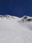Die Abfahrtsvariante via Rücken oberhalb Punkt 2417 und dann westlich in den Hang traversieren war heute super. So kann man dem "vercharete" Gipfelhang ausweichen.