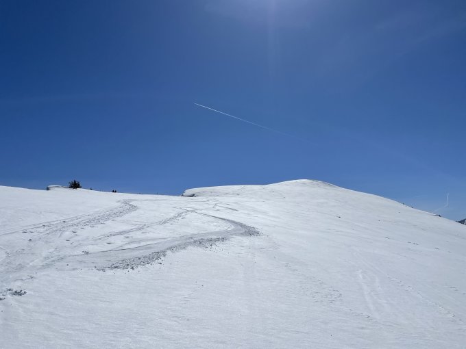 Grad noch knapp genügend Schnee bei der Talstation des Skilifts, dürfte in 2-3 Tagen bereits Lücken aufweisen. Wetter prachtvoll, kaum Leute unterwegs. Das steilste Stück bei der Skilift-Bergstation bewältigte ich mittels Portage auf der aperen Südseite. Danach ohne Probleme zum Blutte Hubel, der mein Gipfelziel war. Tolle Rundsicht, bisschen kalter Wind, aber hey, nichts zu meckern! Abfahrt oben feuchter Pulver, oberhalb Grätlihütte Firn tragend. Der lange Hang hinunter von dort war heute das Beste. Danach der Piste nach (respektive der Liftspur) zum Auto. Eine wunderbare Frühlingstour.