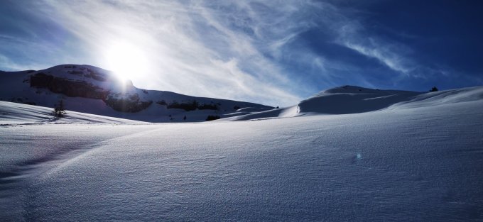Abfahrt sehr angenehm: Pulver auf harter meist unverspurter tragender Unterlage, Abfahrt bis hinunter zur Pragelstrasse bei Alt Stafel und durchs Chlön-Bachtobel (statt Strasse, die von Rutschen übersät ist. Achtung irgendwann trägt das mal nicht mehr...) bis zur Brücke, danach entspannt ohne Armeinsatz der Strasse entlang zurück bis zum Parkplatz.