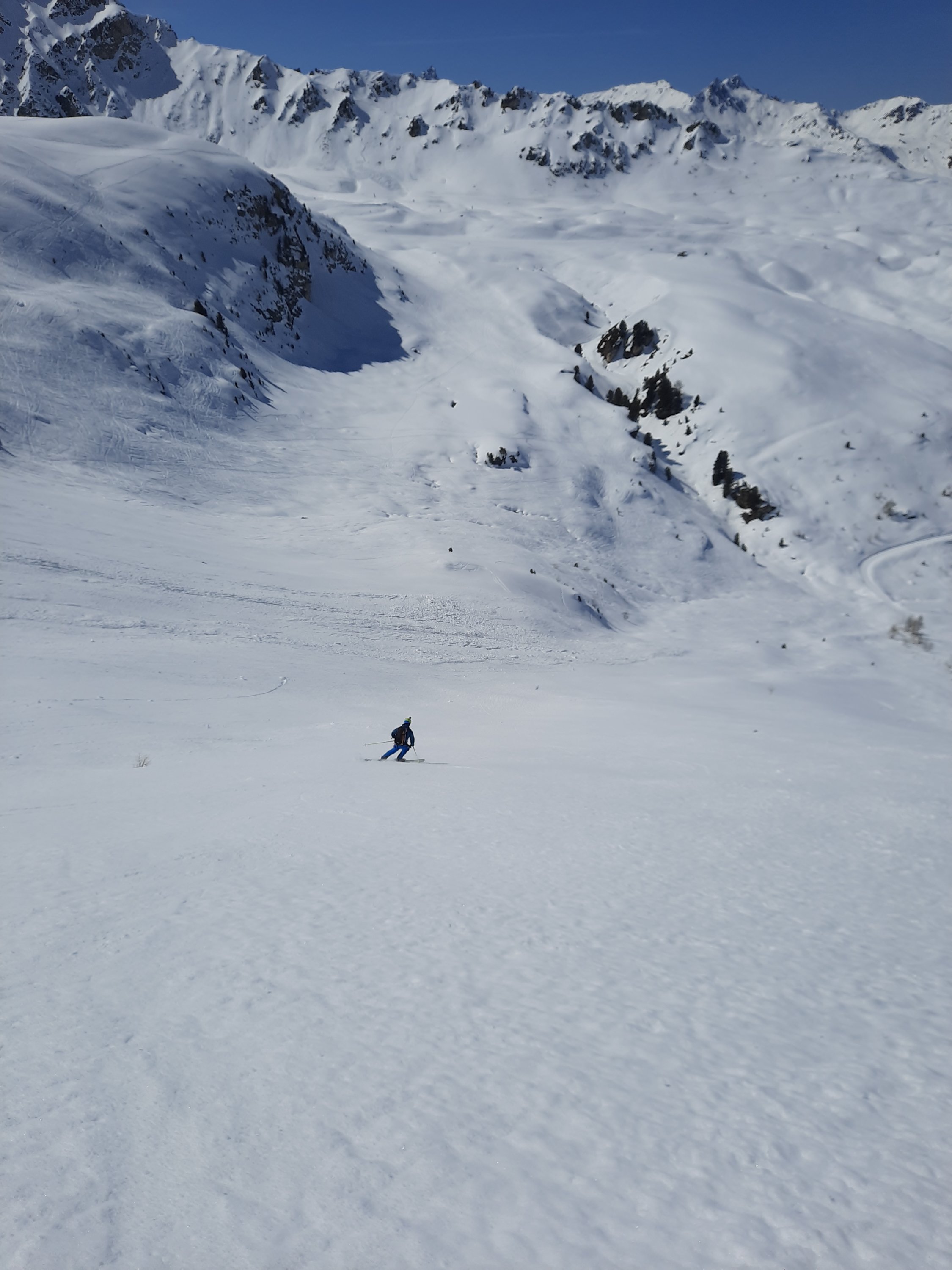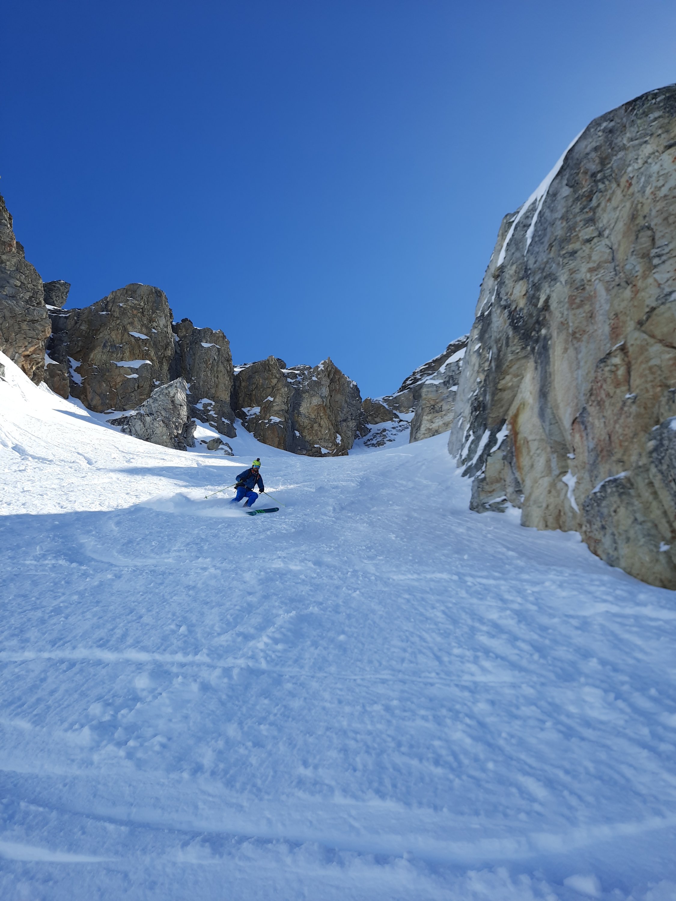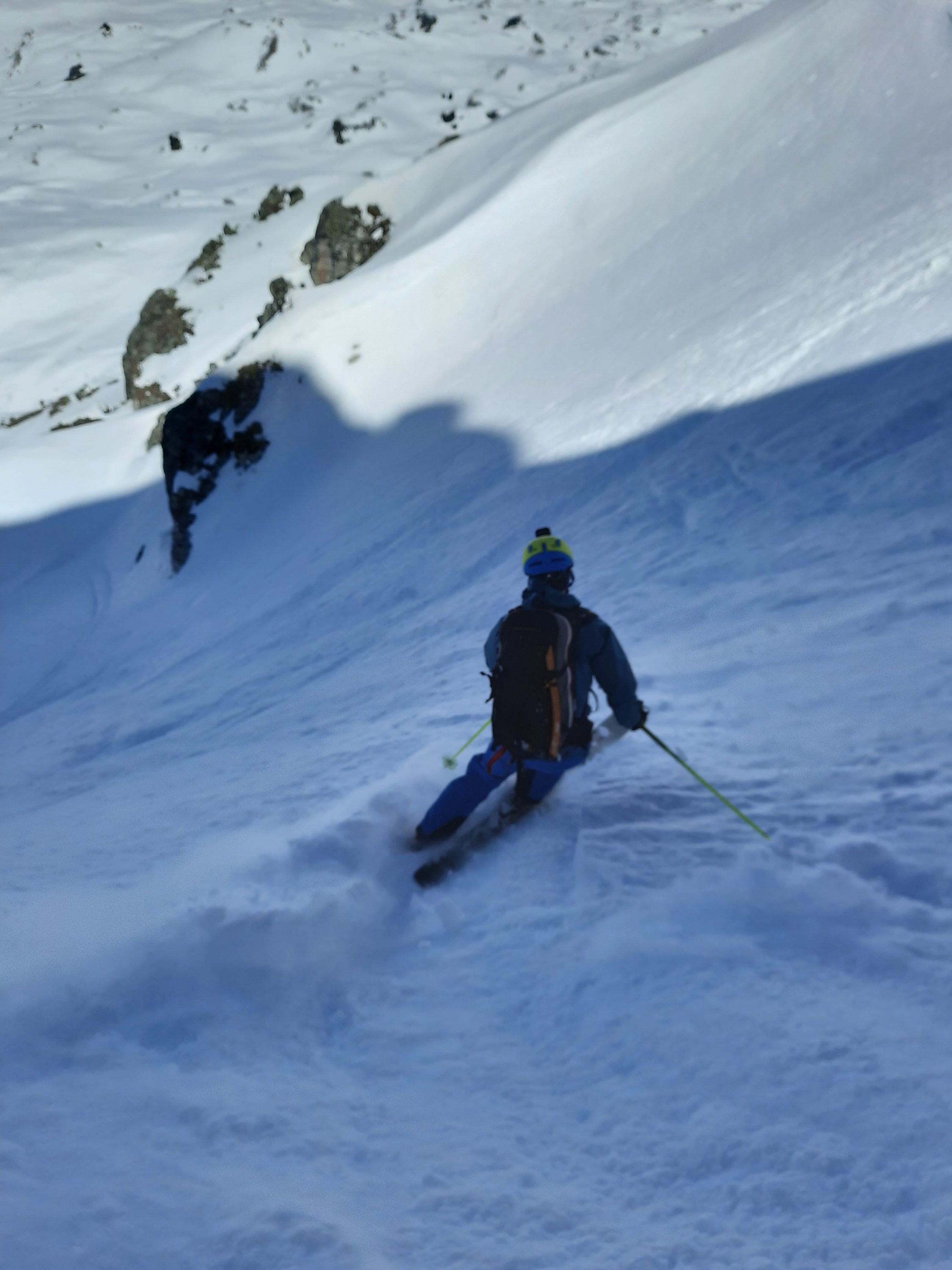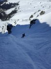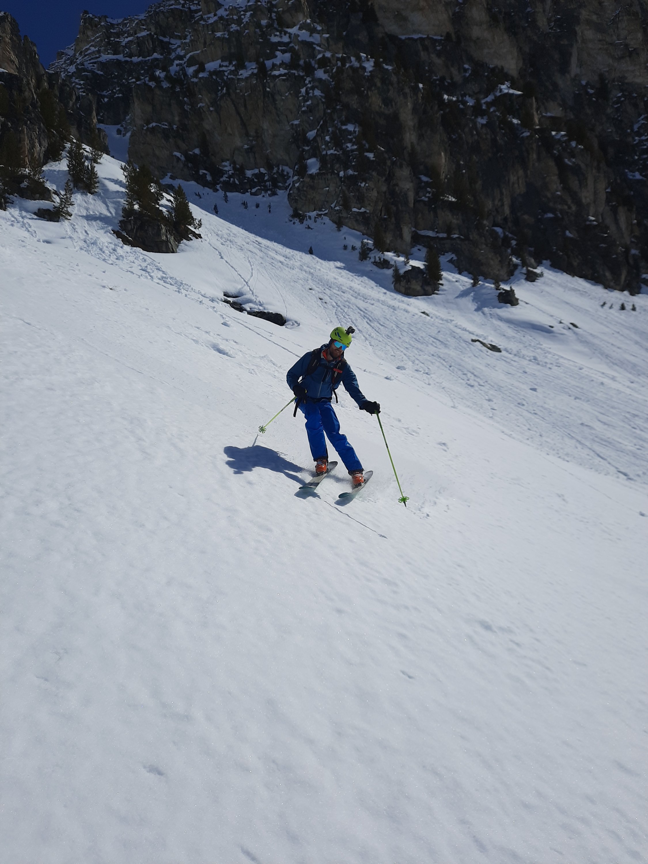 Seit Februar dieses Jahr ist ein Doppel-Fixseil an Abseilstelle eingerichtet(60m.).Abstieg guter Trittschnee,Abfahrt Culi oben noch Pulver,ab Mitte einige alte Rutsche,unten etwas ruppig.Culiausfahrt und Hänge bis Piste schöner Sulz.Restabfahrt über Piste sehr gut.