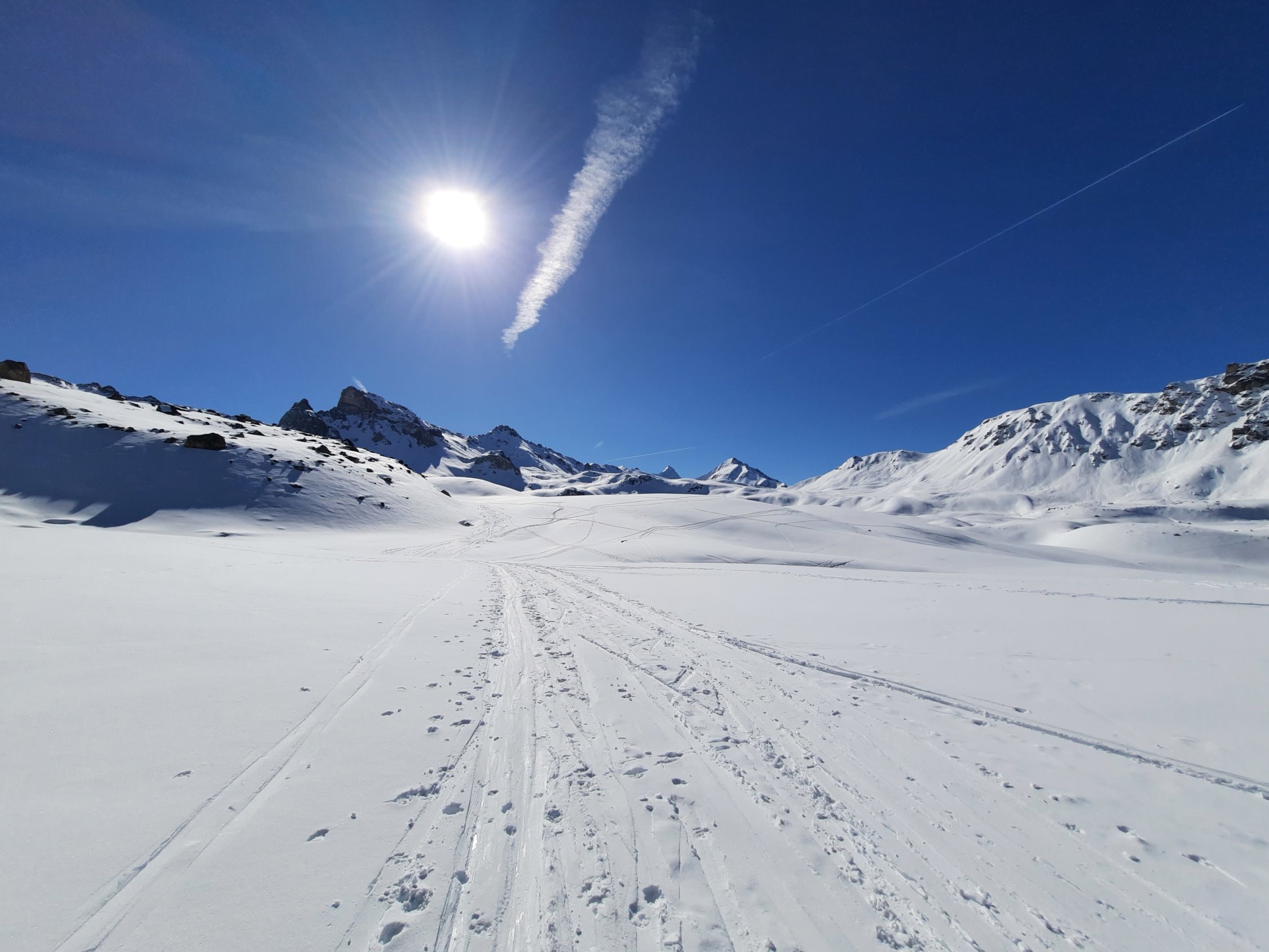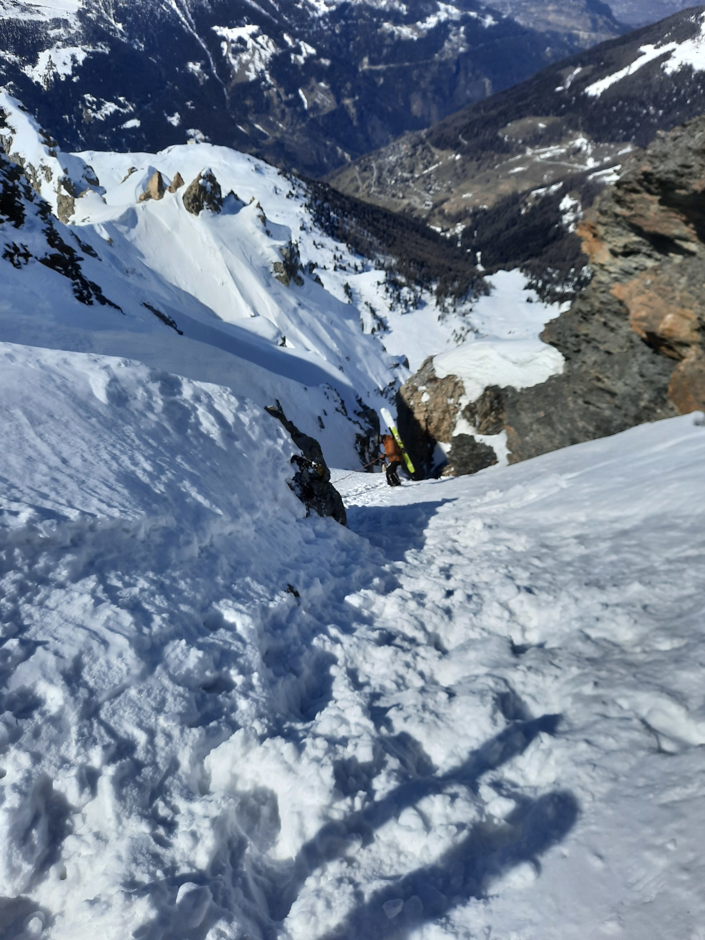 Kurze Tragstelle in Gipfelhang(steil).Traverse zu Culi sehr exponiert über Felsband ,geht aber mit Ski.