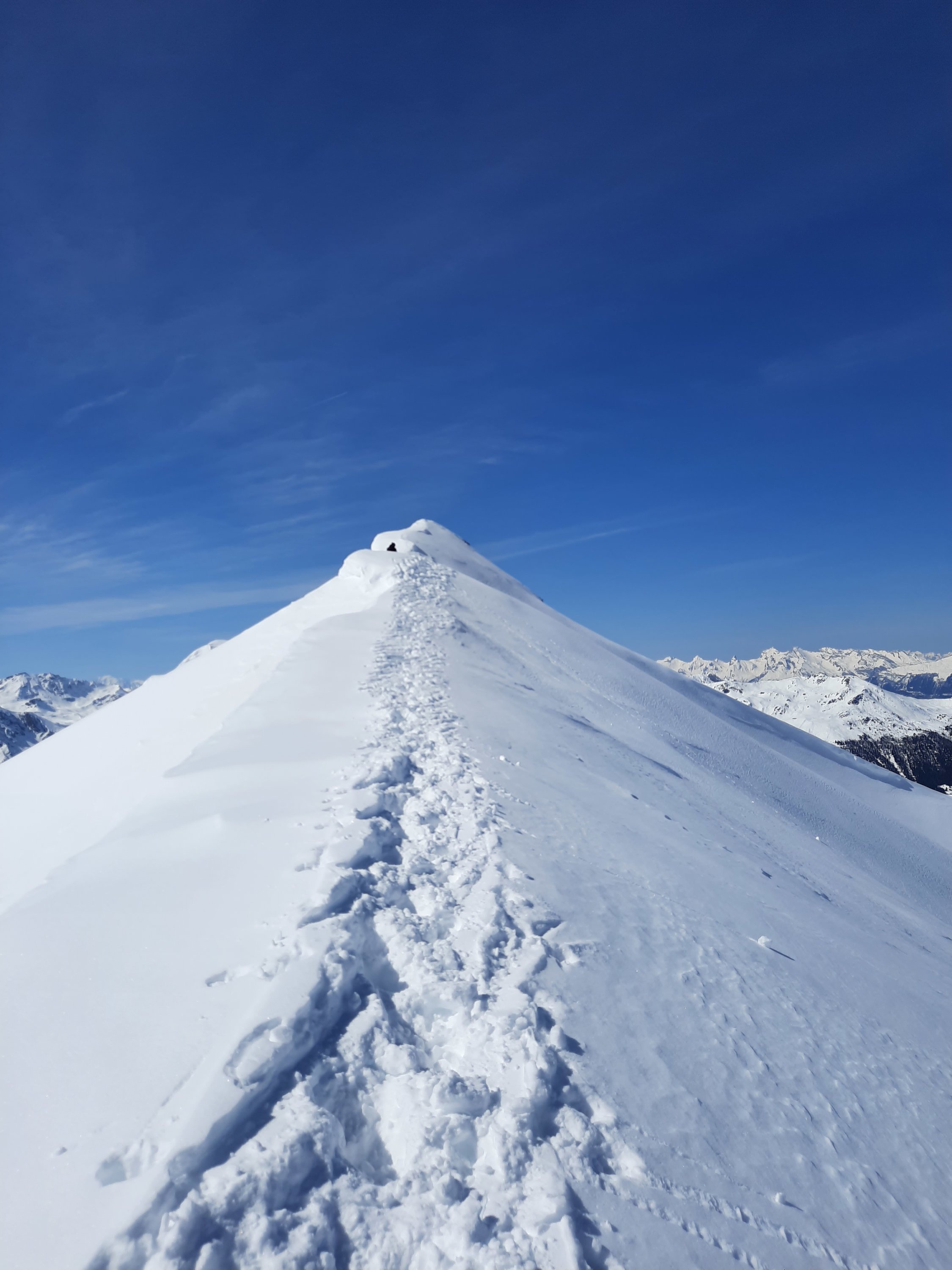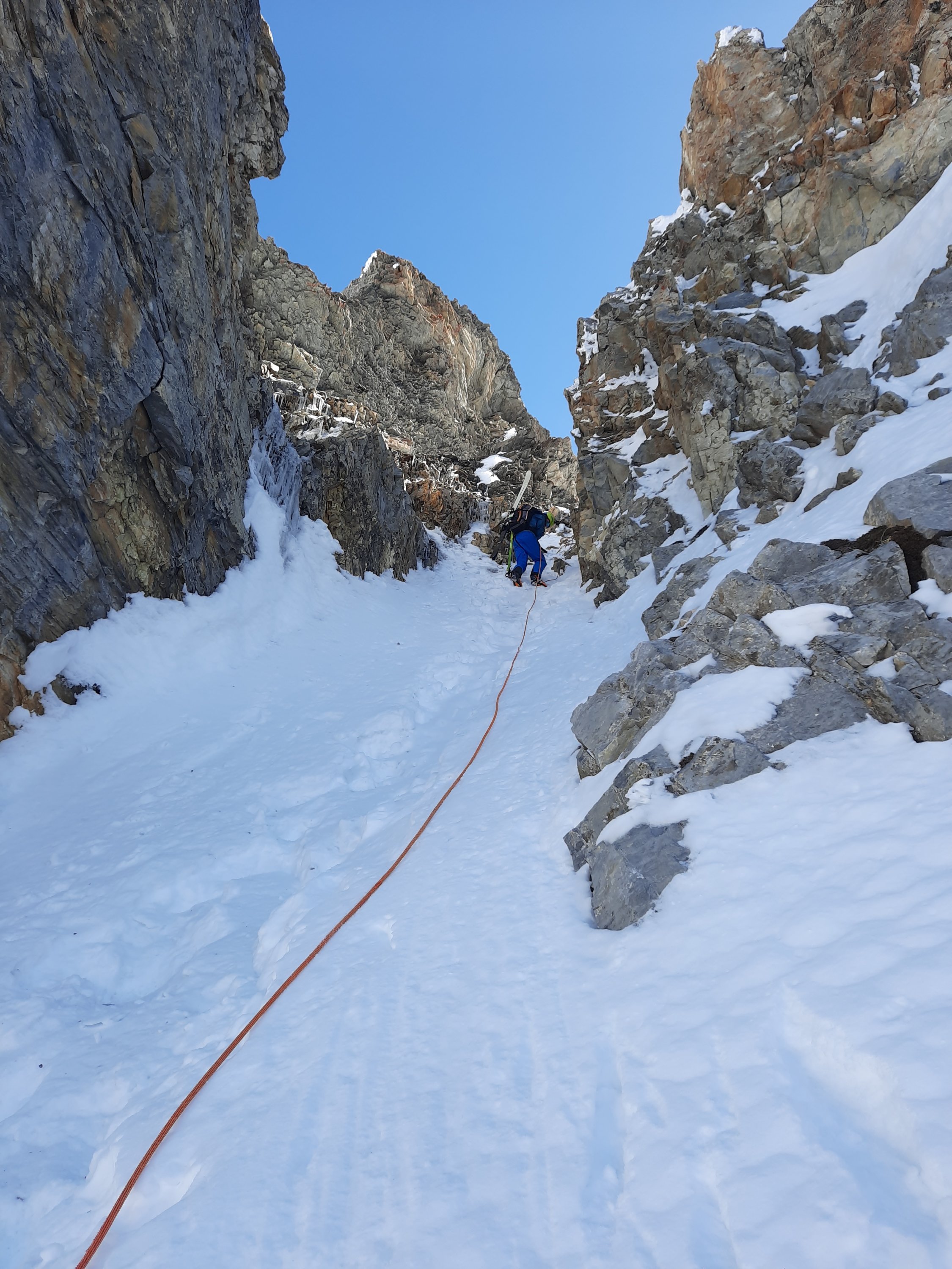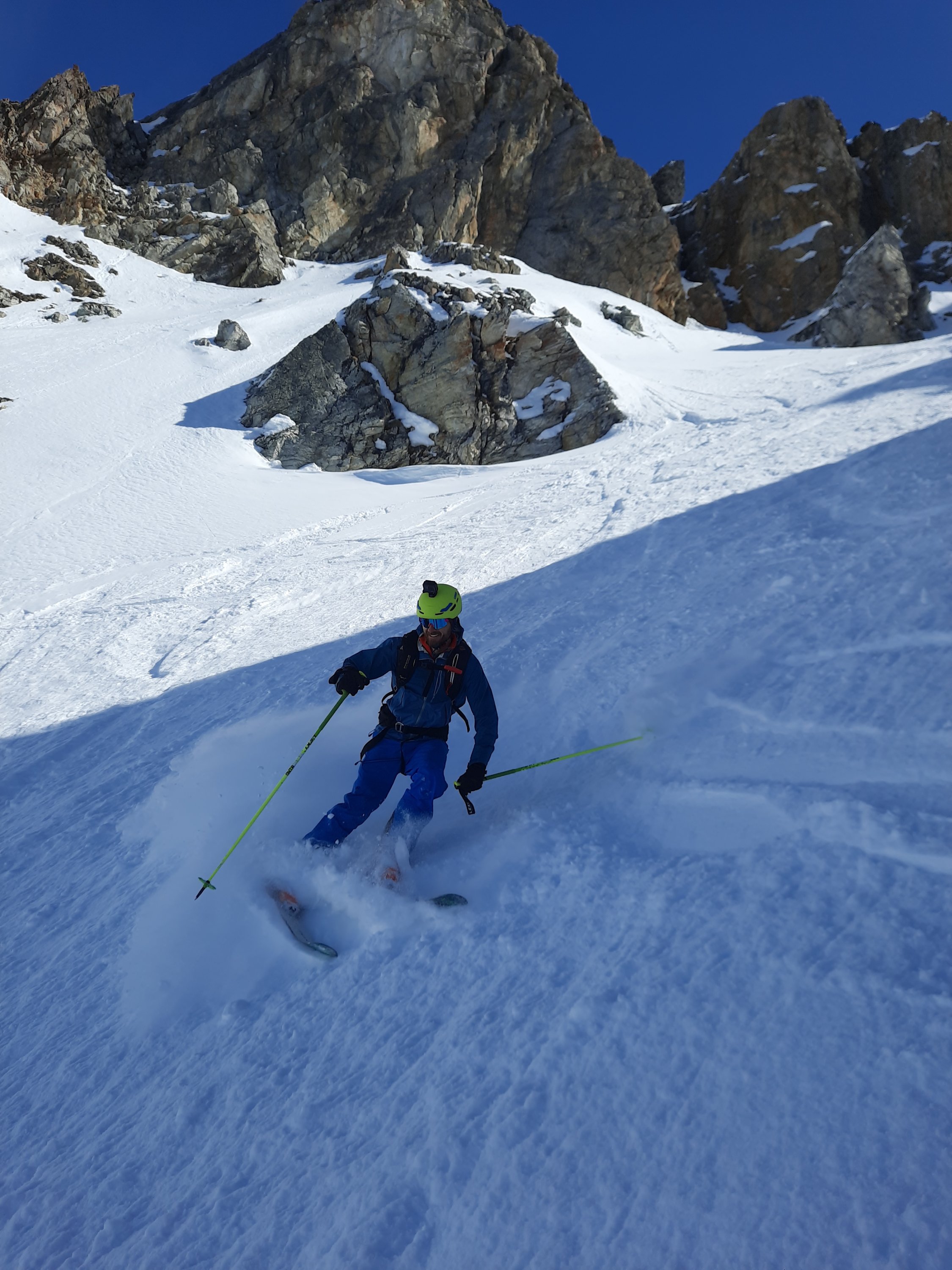 Sind direktes Nordcouloir gefahren.Aufstieg Normalroute, ab Piste von Prilet(1694m),einige Parkplätze.