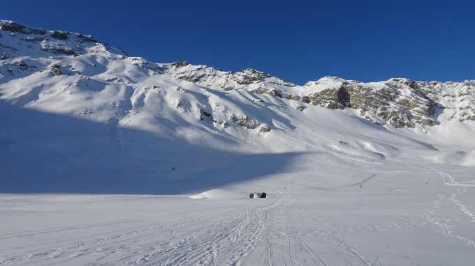 Es gibt viele Steile Varianten Richtung Engstligenalp die noch keine Spuren hatten.