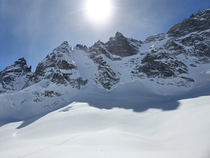 Ich habe den ganzen Tag keine Menschenseele angetroffen, ausser bei der Abfahrt habe ich eine Gruppe angetroffen, die noch hoch gingen!? Ich dachte, ich sei spät dran?? Wohl eine Vollmondskitour...
