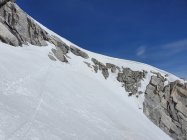 Die Skis müssen nur einmal kurz nach Plan Canin, bei ca. P2000 wegen einem Rutsch abgezogen werden (Rutsch wurde mit einer Maschine frei gemacht, siehe Bild unten).