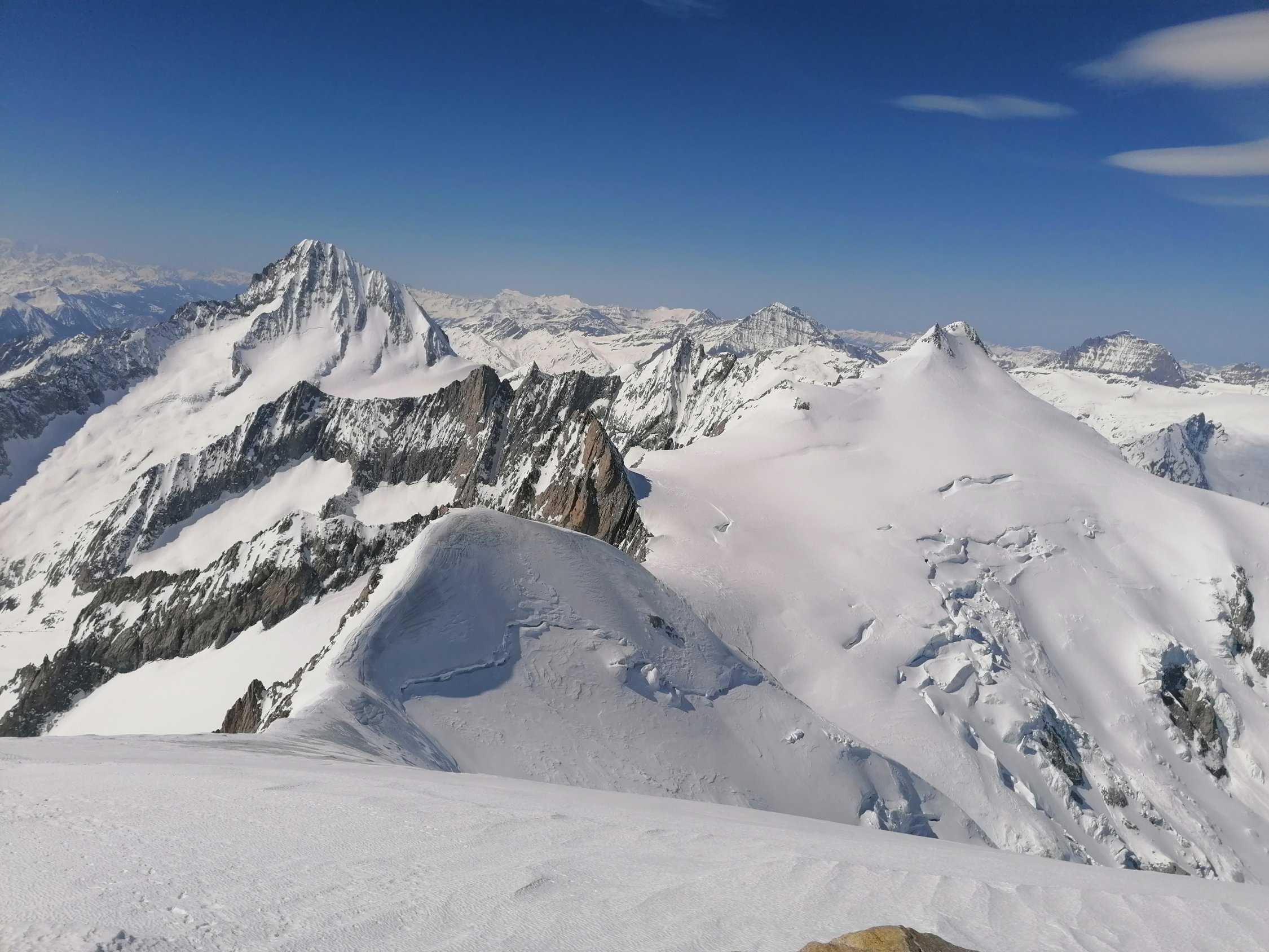 Sehr gut Verhältnisse zum Ski bergsteigen.Überall gute Hartschnee Auflage. Im Aufstieg bis und mit Seraczone dick eingeschneit, Übergang danach hat grosse, zugewehte Spalten. Siehe Bild vom Breithorn. Wir sind angeseilt gegangen. Beichtpass und Gredetscherpass wurden gemacht. Wir sind am Folgetag über Beichtpass raus. Im Abstieg mit Steigeisen Pulver/Hartschnee in Richtung Lötschenpass. Abfahrt am Mittwoch um 12:00 noch pickelhart gefroren.