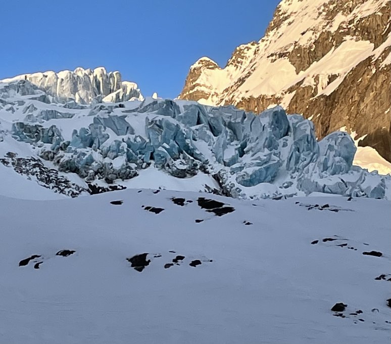 Das Gebiet ist zur Zeit noch sehr gut eingeschneit. Im Rosenlaui liegen noch 60-100 cm Schnee. Wir sind die ganze Tour ohne Harscheisen gelaufen, was aber nicht heisst diese zu Hause zu lassen. Auch der Übergang auf den Gletscher beim Eisbruch ist gut eingeschneit. Ohne Eis. Der Gipfelhang hat guter Trittschnee, mit Steigeisen. Heute sehr angenehme Temperaturen bis auf den Gipfel. Praktisch kein Wind.