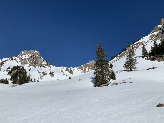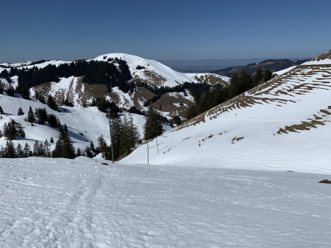 Am Morgen Firn und dann ab 9 Uhr in der Abfahrt vom Alpiglegalm zum Mittlischt Morgete aufgesulzt und ab 10 Uhr auch in der Ochsenflanke.