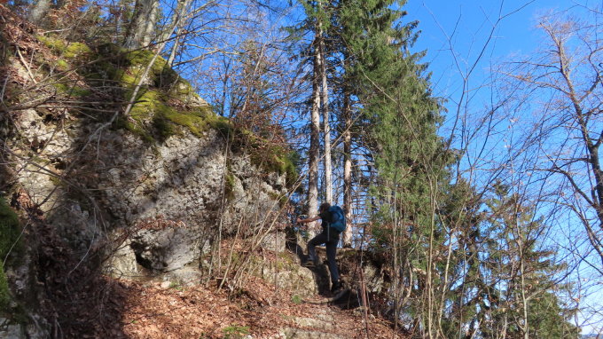 Ein toller Frühlingstag. Schon beim Start einige Plusgrade. Beim Aufstieg durch den steilen Bergwald zur Kanzel haben wir die Betriebstemperatur rasch erreicht. Am Gipfel leichter Wind bei strahlendem Sonnenschein.