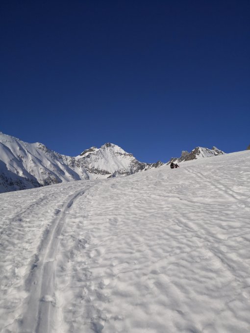 Schnee noch vom Parkplatz weg, bin zuerst auf der Strasse bis Ski Hütte Erbs, dann einer guten Spur folgend bis 2300m. Dort infolge schon recht weichem Schnee und tropischen Temperaturen entschieden umzukehren. War richtige Entscheidung, auf Abfahrt je nach Hangausrichtung leichter Sulz oder schon schwerer Nassschnee.