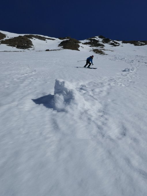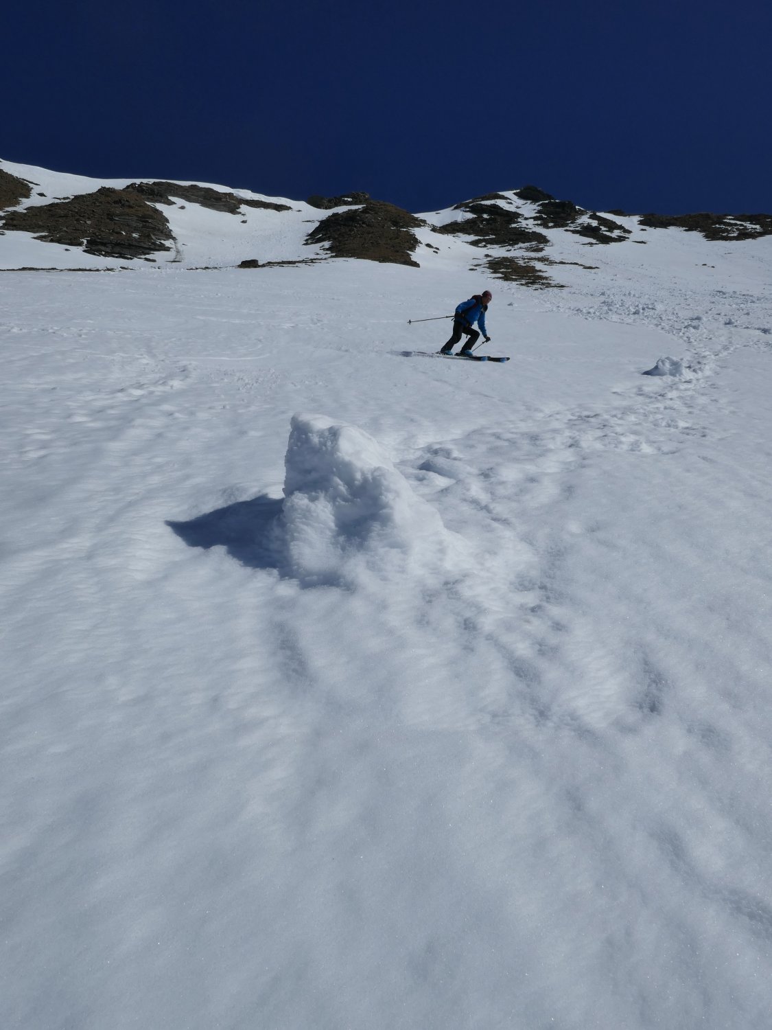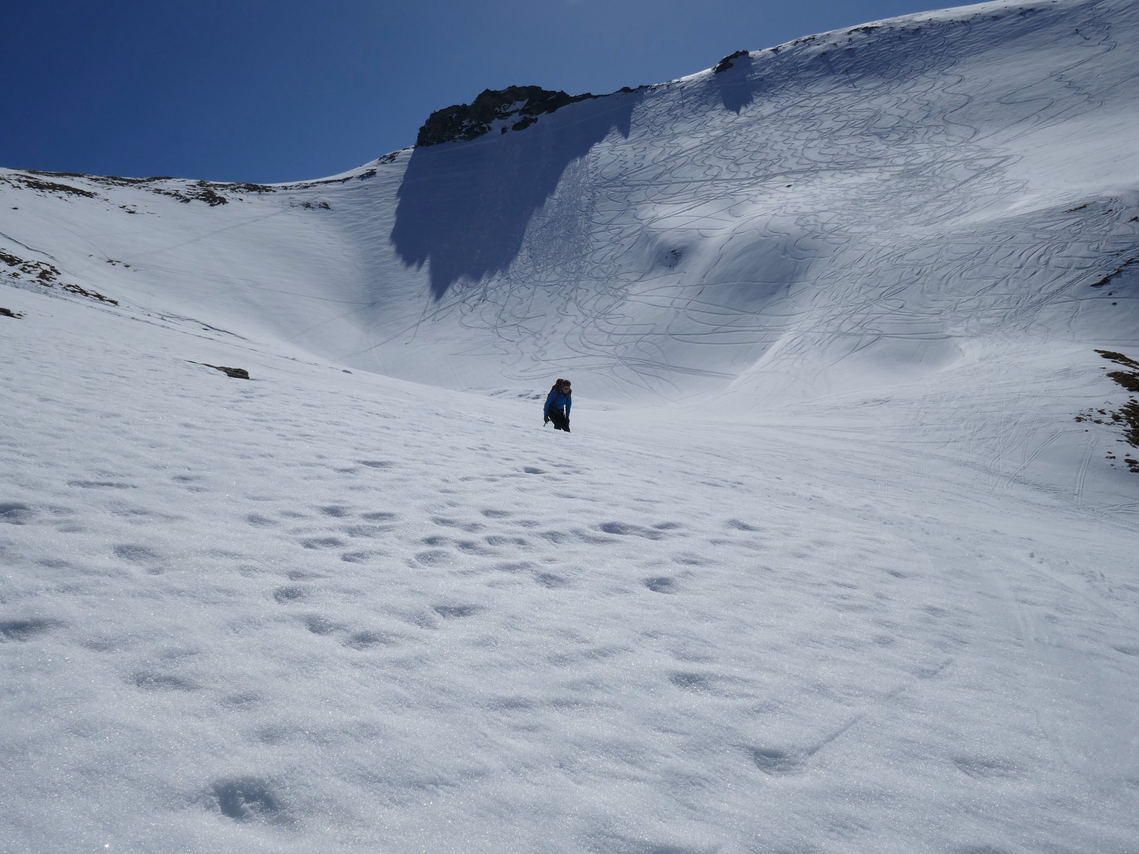 Loht sich für gute Skifahrer die Skis bis unter den Gipfel zu tragen und dann durch das steile Couloir runter.