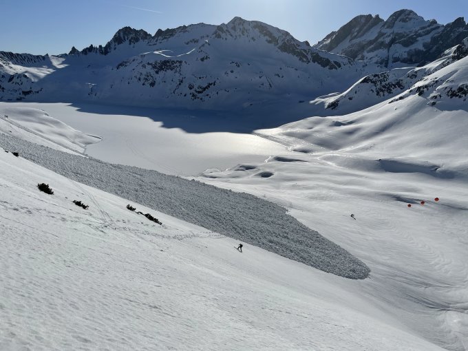 Größerer Naßschneelawinen am See schon entladen.