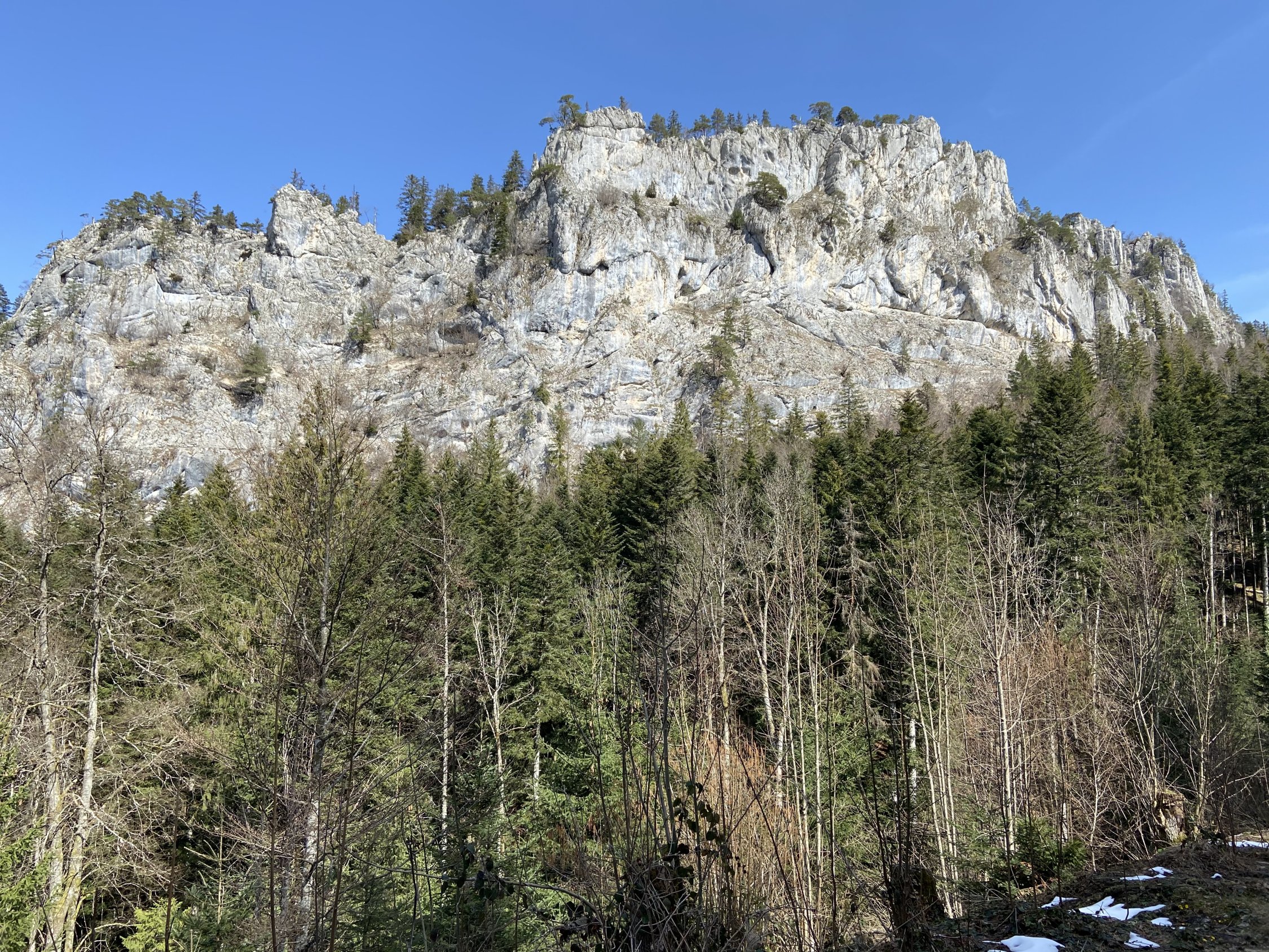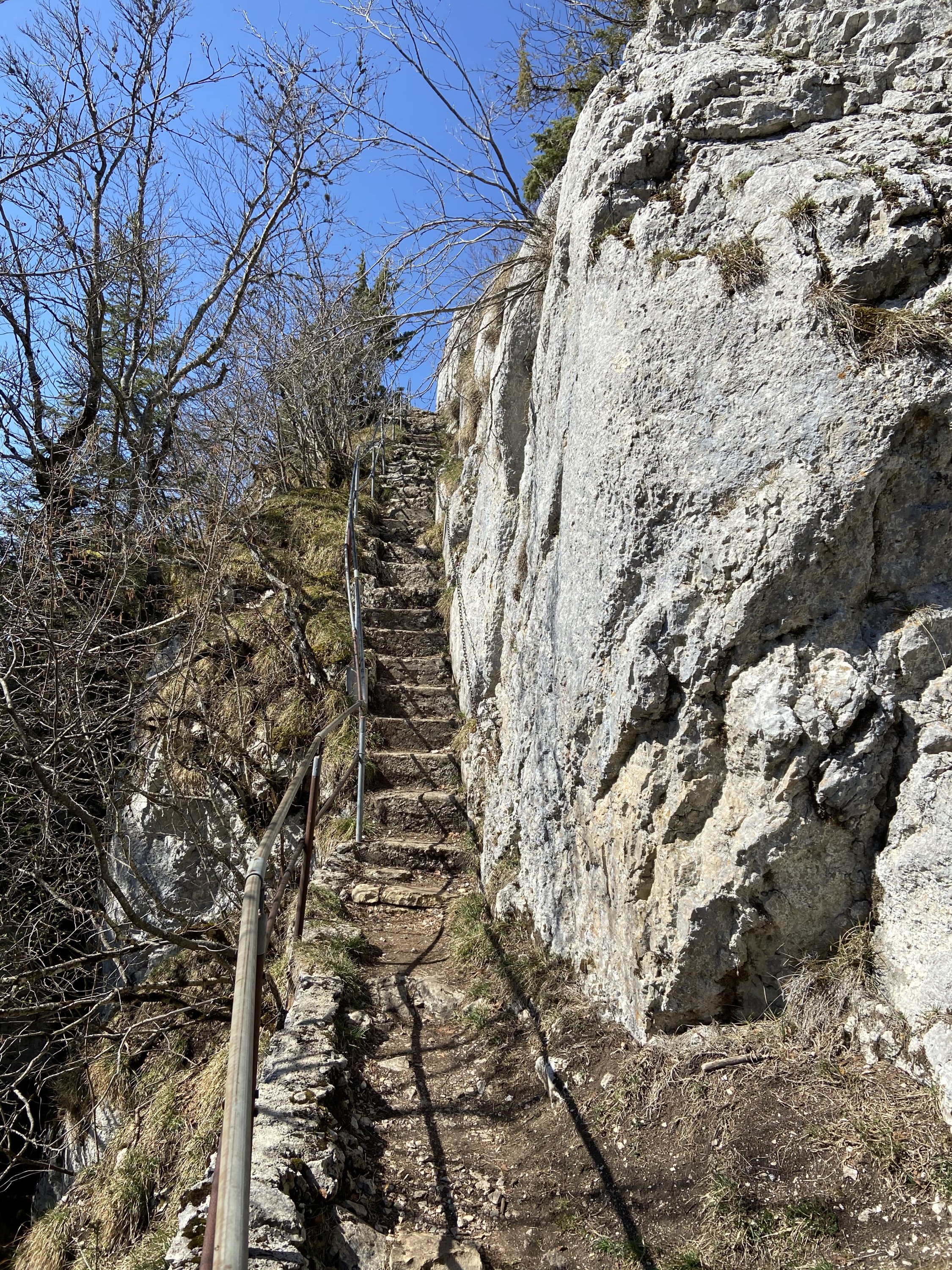 sehr milde Verhältnisse, spärliche Höhenbewölkung, ansonsten blauer Himmel. Gegen Mittag Aufzug von kleinen Quellwolken. Wege schneefrei und mehrheitlich trocken