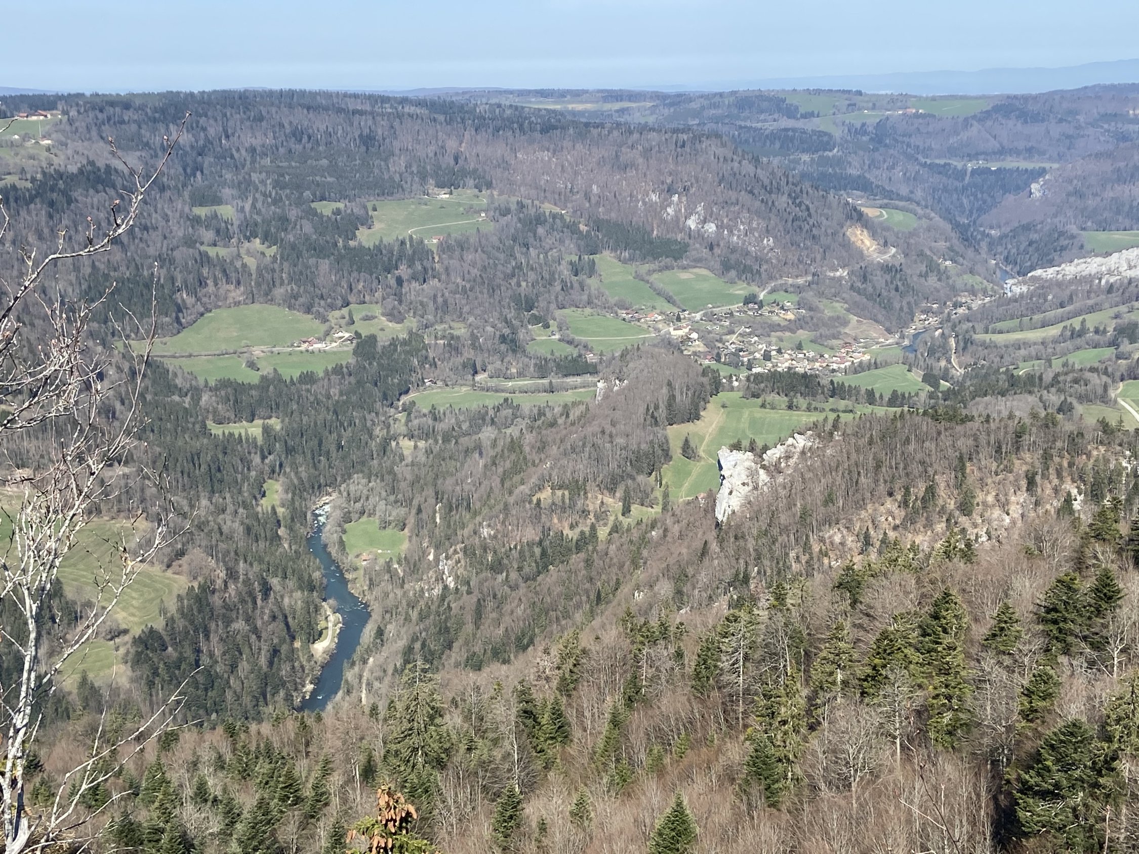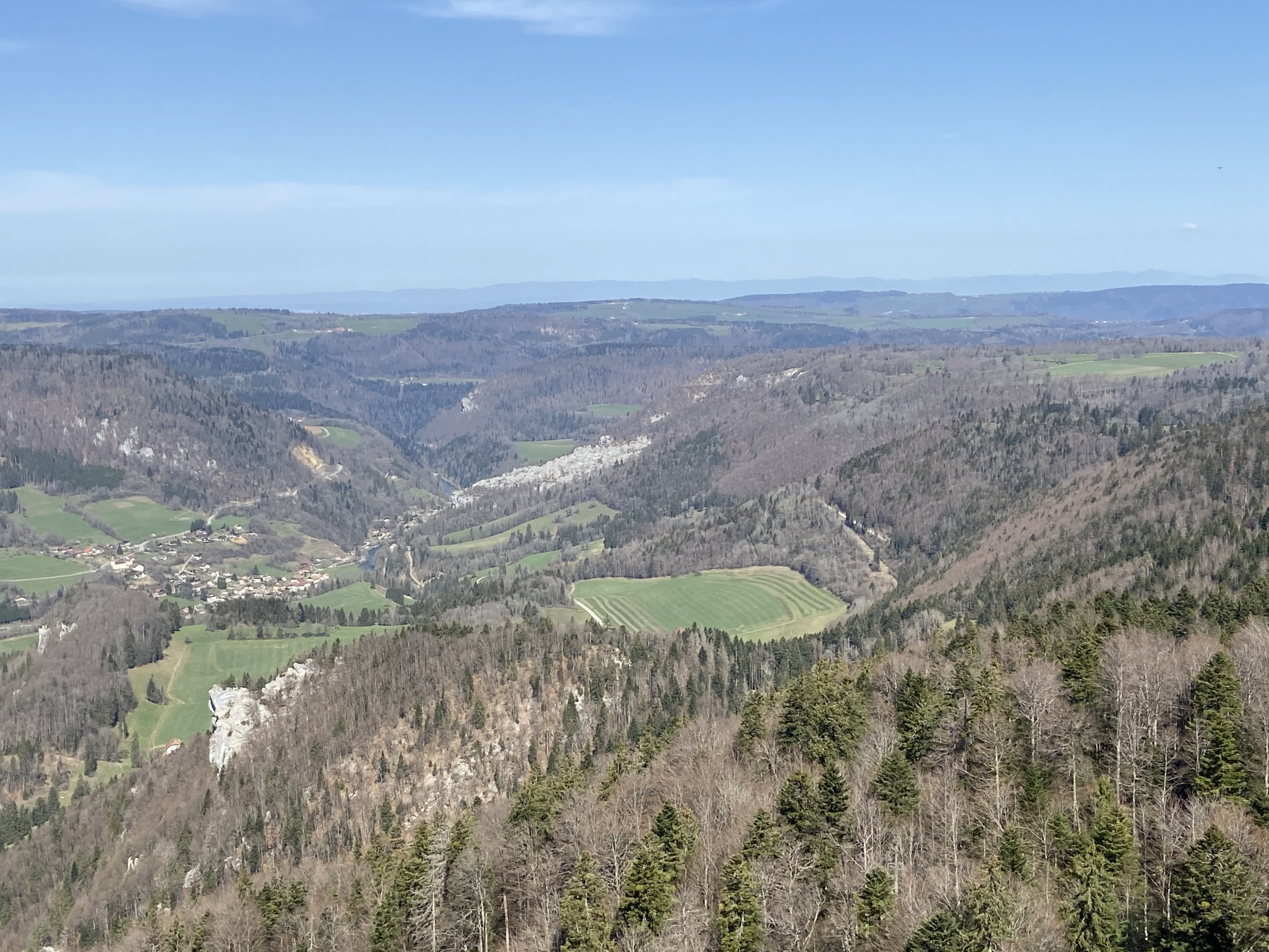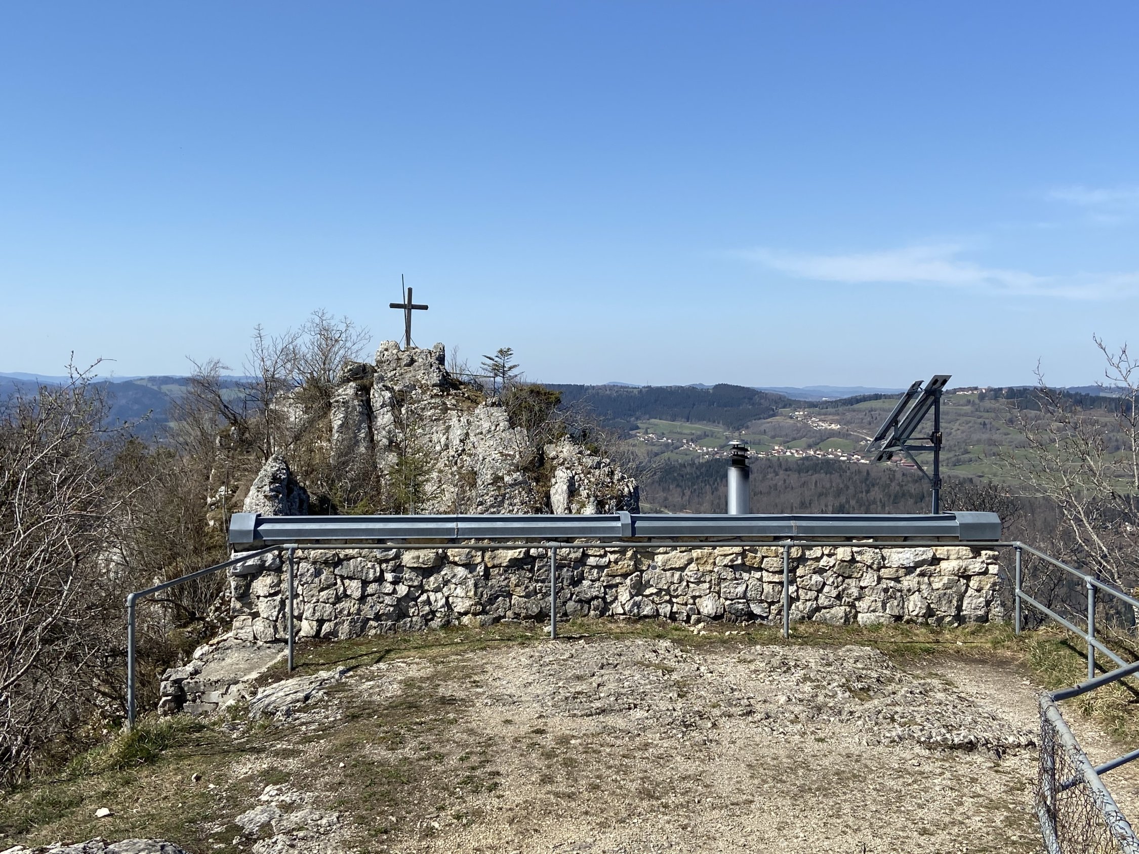 Nun ist auch der Sommetres digital. Die Metallplatte befindet sich auf der Westseite des Gipfelkreuzes. Unterhalb des Gipfels ist die Übernachtung in einer Selbstversorgerhütte möglich (Unkostenbeitrag etwa CHF 10.-). Der landschaftlich reizvollste Teil ist zweifellos der Abschnitt Muriaux - Sommetres - Chez le Bole - Le Theusseret (ein vorzügliches Forellenrestaurant) - Goumois. Der Aufstieg zurück nach Muriaux durch den Wald hat landschaftlich weniger zu bieten und eher sportlichen Charakter. Eine Verlängerung der Tour von und nach Saignelegier ist möglich, jedoch landschaftlich reizlos. Allerdings dort ein grosser Parkplatz am Marche de Concours. Wir haben in Muriaux Corona-bedingt noch einen Parkplatz am geschlossenen Hotel Chambre d'Hotes ergattert. Ansonsten lohnt die Anfahrt mit der Bahn bis zum Haltepunkt von Muriaux, da es im Dorf faktisch keine Parkmöglichkeiten gibt. Restaurant Le Theusseret (Guide Bleu La Suisse Gourmande) bis auf weiteres leider geschlossen. In Goumois (seit 1870 in Frankreich und Schweiz geteilt) gegenüber vom Schweizer Zoll Take-away in einem Gasthaus möglich.