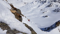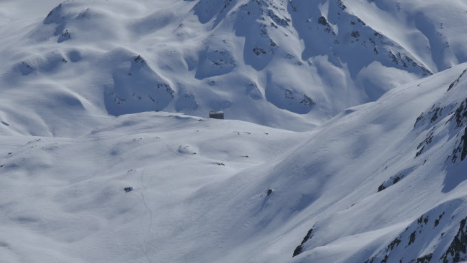 31.3. Gegen 8:30 Uhr ins Val dal Tschüvel hinab gerattert und in die nur oberflächlich aufgeweichten Südhänge gequert Richtung Sertigpass.