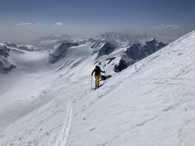 Angesichts des relativ späten Starts in All'Acqua um 7:30 und der Länge der Tour waren die Verhältnisse trotz hohen Temperaturen gut. Mit Ski und ohne Harscheisen bis auf den Gipfel.