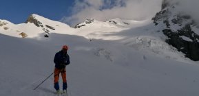 was sehr angenehm zum hochlaufen war! Momentan sehr gute Verhältnisse im Gebiet, darum waren wir auch etwas schneller unterwegs als sonst. Die Schlüsselstelle ist momentan der zweite Bruch im oberen Bereich, Harsteisen sind da sehr hilfreich. Die Steigeisen blieben heute im Rucksack.