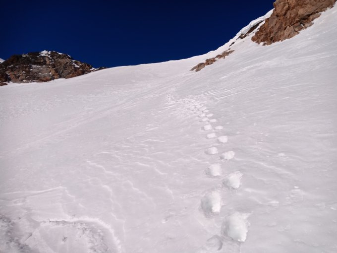 Gute Verhältnisse in der Ostflanke, sonst überall sehr hart, Windharsch.