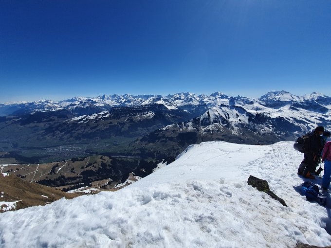 Nur 11 Leute am Berg bei absoluten Top-Verhältnissen. Start um 07h00 bei gefrorener Schneedecke. Die Feissenbodenlawine ist freigefräst. Ab Feissebode kann man im Tal die Ski nutzen. Die Strasse ist aper bis Erbs-Chirel, im Teilstück Hodelbrücke-Erbschirel hat es eklige Wassereisstrecken. Danach hat es durchgehend Schnee, nur unter der Hütte 1834 gibt es 2 kurze Tragstellen. In der obersten Kurve im hinderste Chirel haben wir die Harsteisen gesetzt.