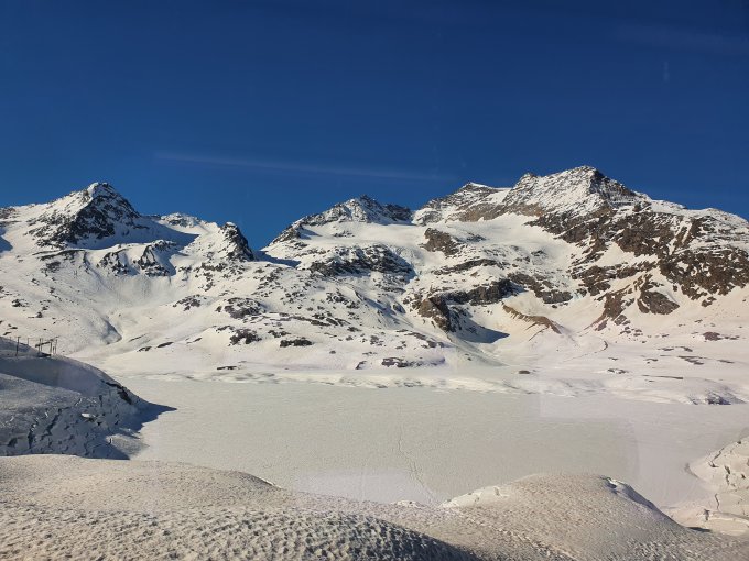 Sehr schöne Aussicht zum überbevölkerten Piz Palü. Doch wegen dem Sturm oben konnte ich die Aussicht leider nicht lange geniessen...