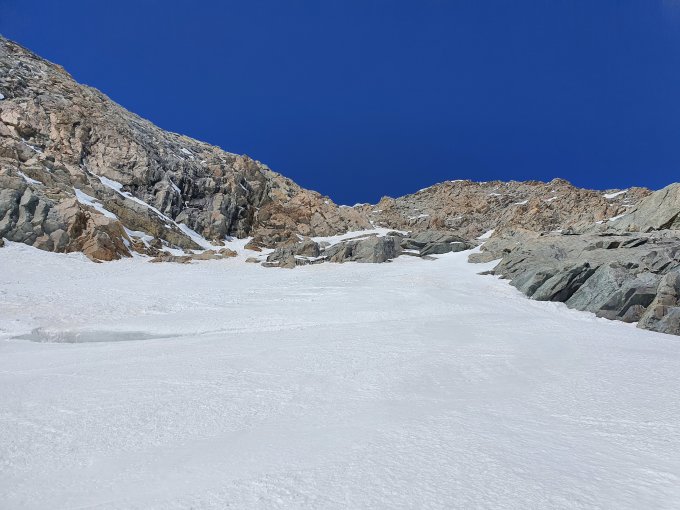 Ich habe die Ostflanke sowie der weitere Aufstieg bis zum Gipfel mit Steigeisen gemacht.