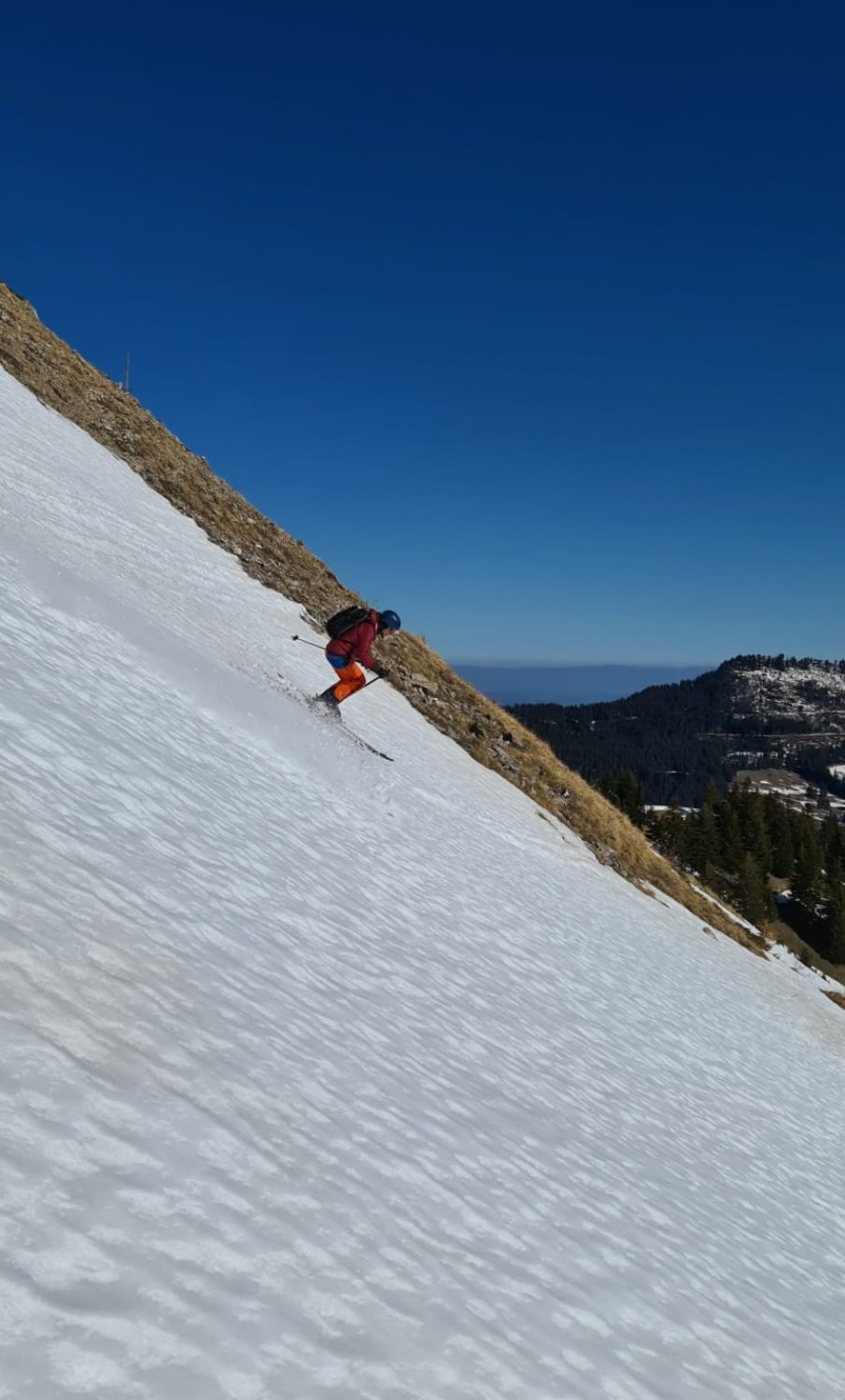 Von der Strasse an genügend Schnee. Morgens steinhart gefroren. Es war sogar ein Wanderer unterwegs auf der Skiroute, ohne Probleme machbar da durch und durch gefroren. Sobald man in die SW-Flanke wechselt hat es bald keinen Schnee mehr. D.h. ca 15min mehr zu Fuss als bei perfekten Verhältnissen. Wir fuhren um 10 Uhr ab - nach wie vor alles hart. Unten die Osthänge minim angesulzt.
