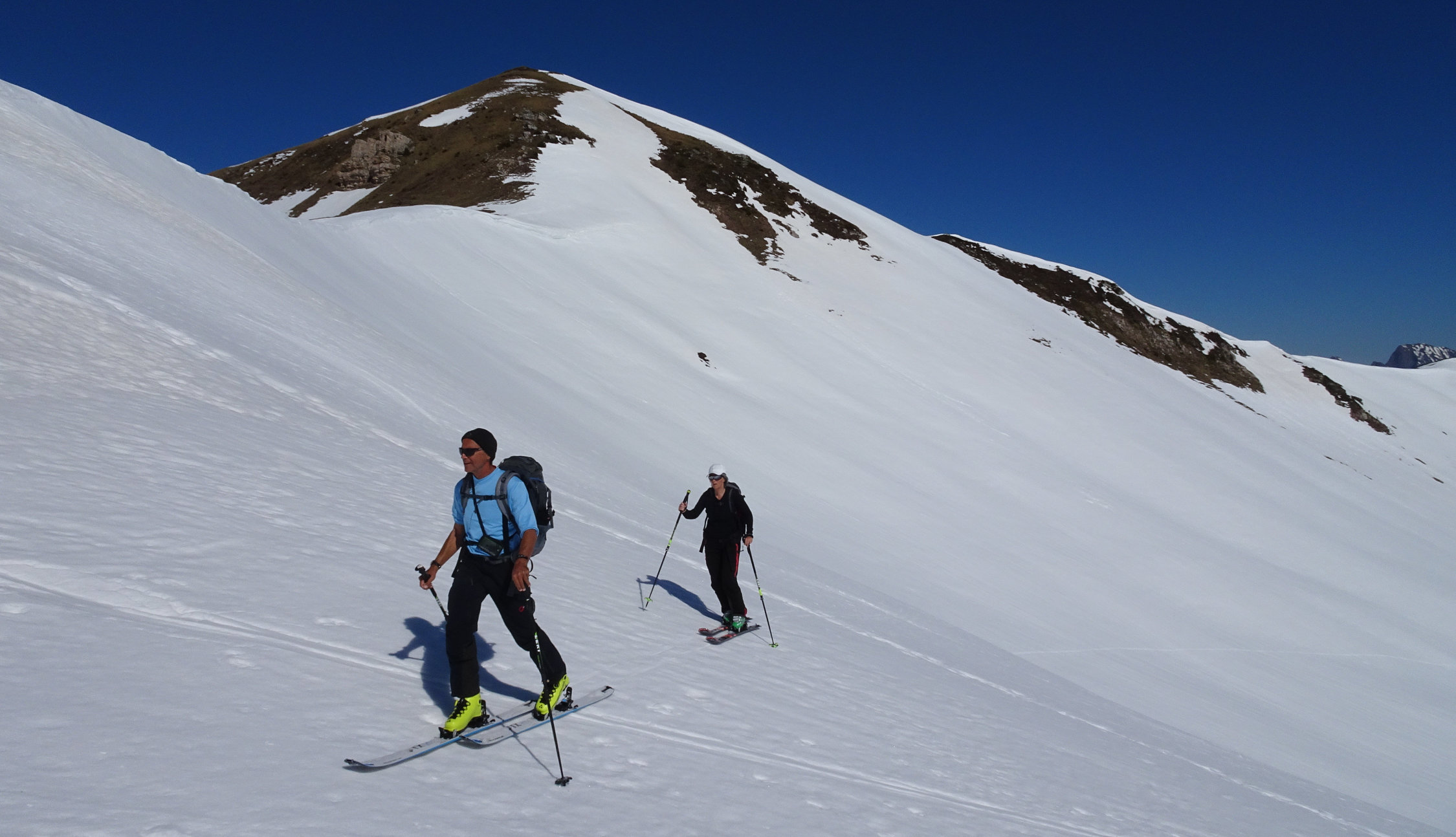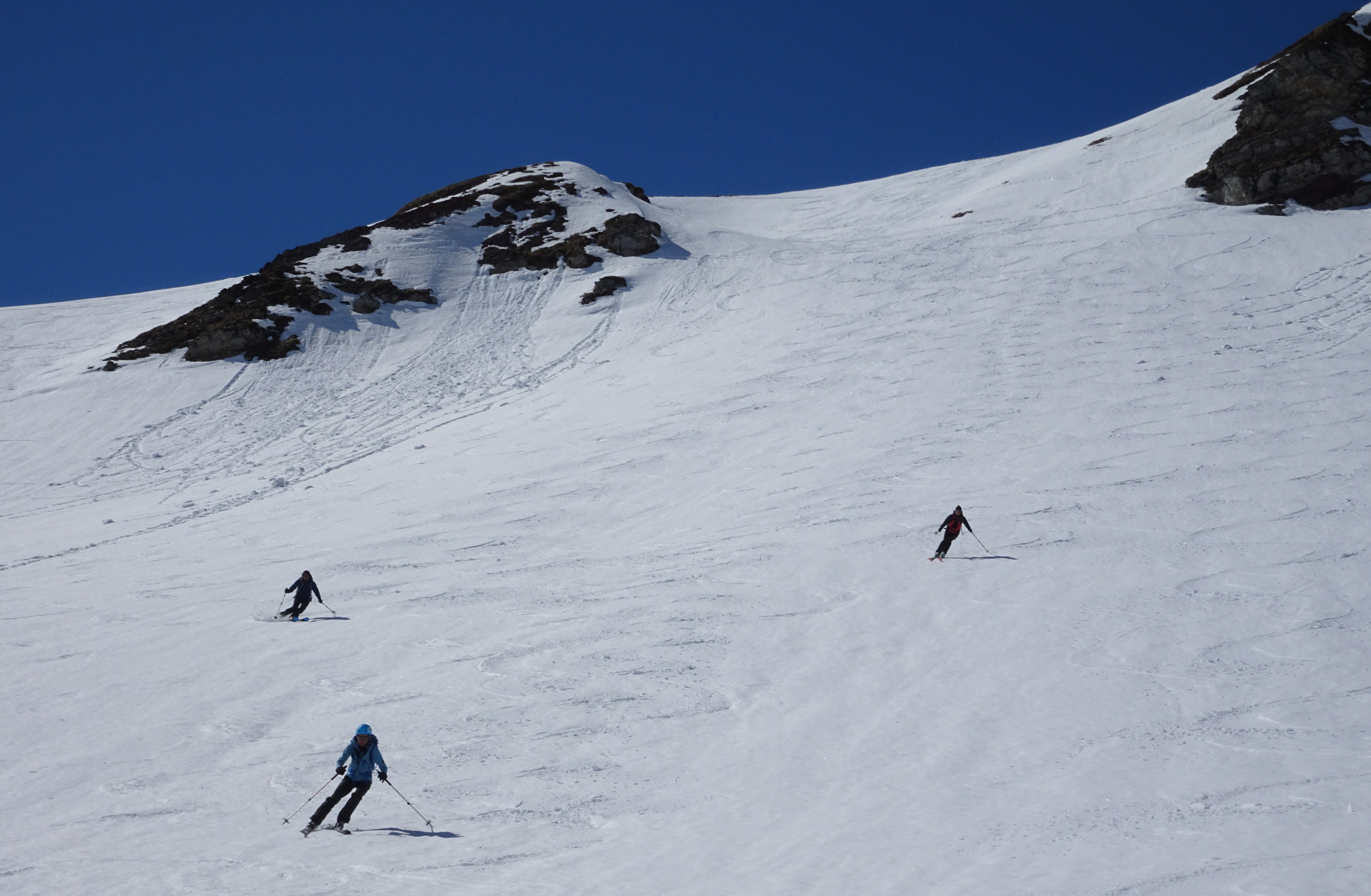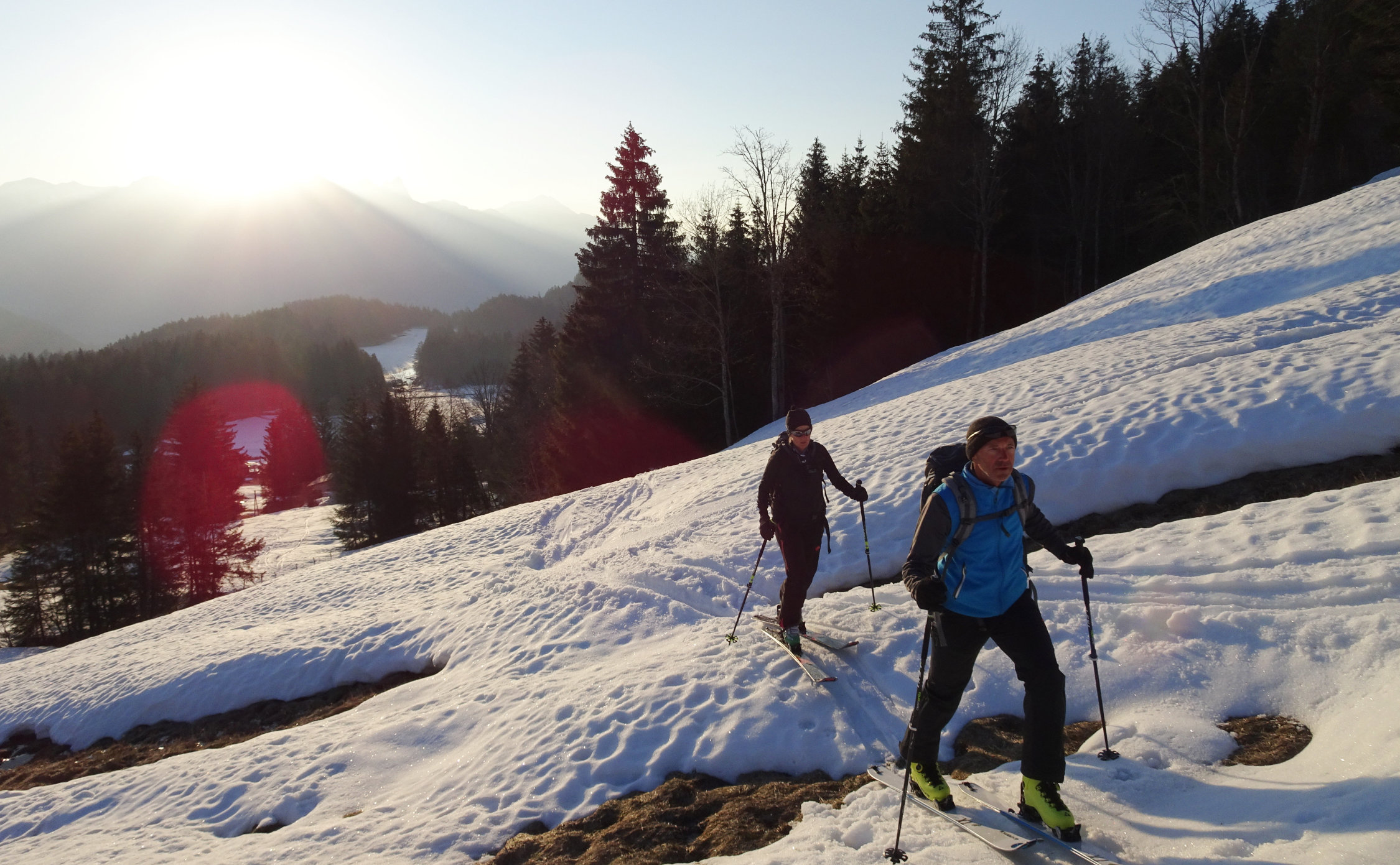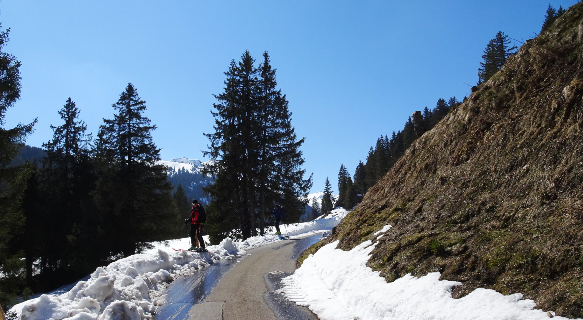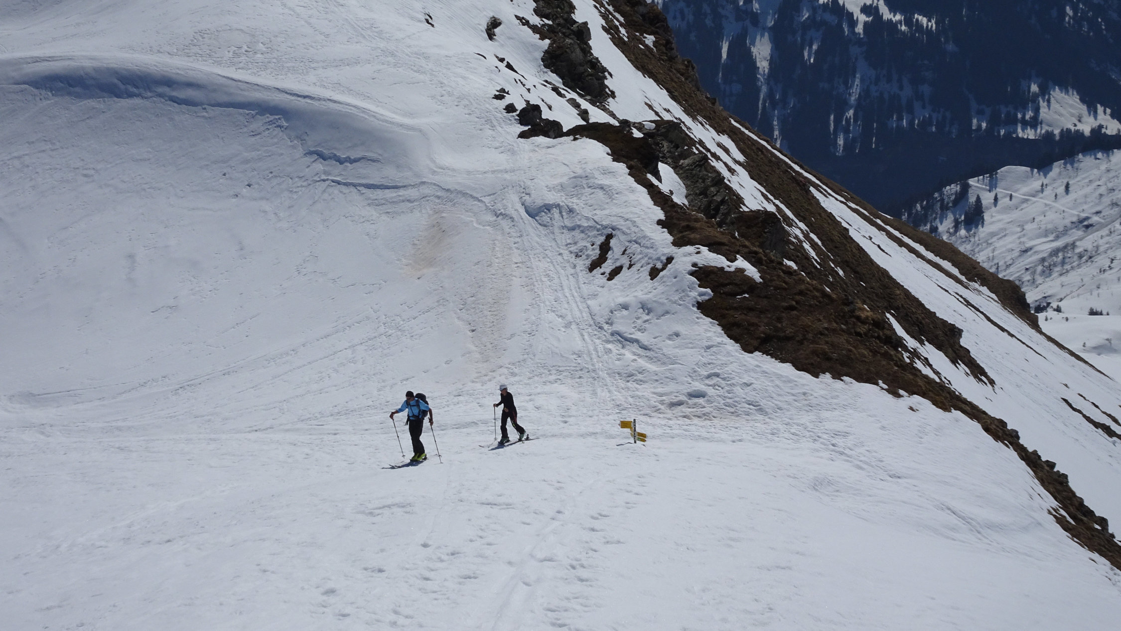 Im Aufstieg (Start um 07:30 Uhr) haben wir durchgehend eine tragende Schneedecke gefunden. Die Abfahrt in leicht aufgesulztem Schnee war ein Traum.