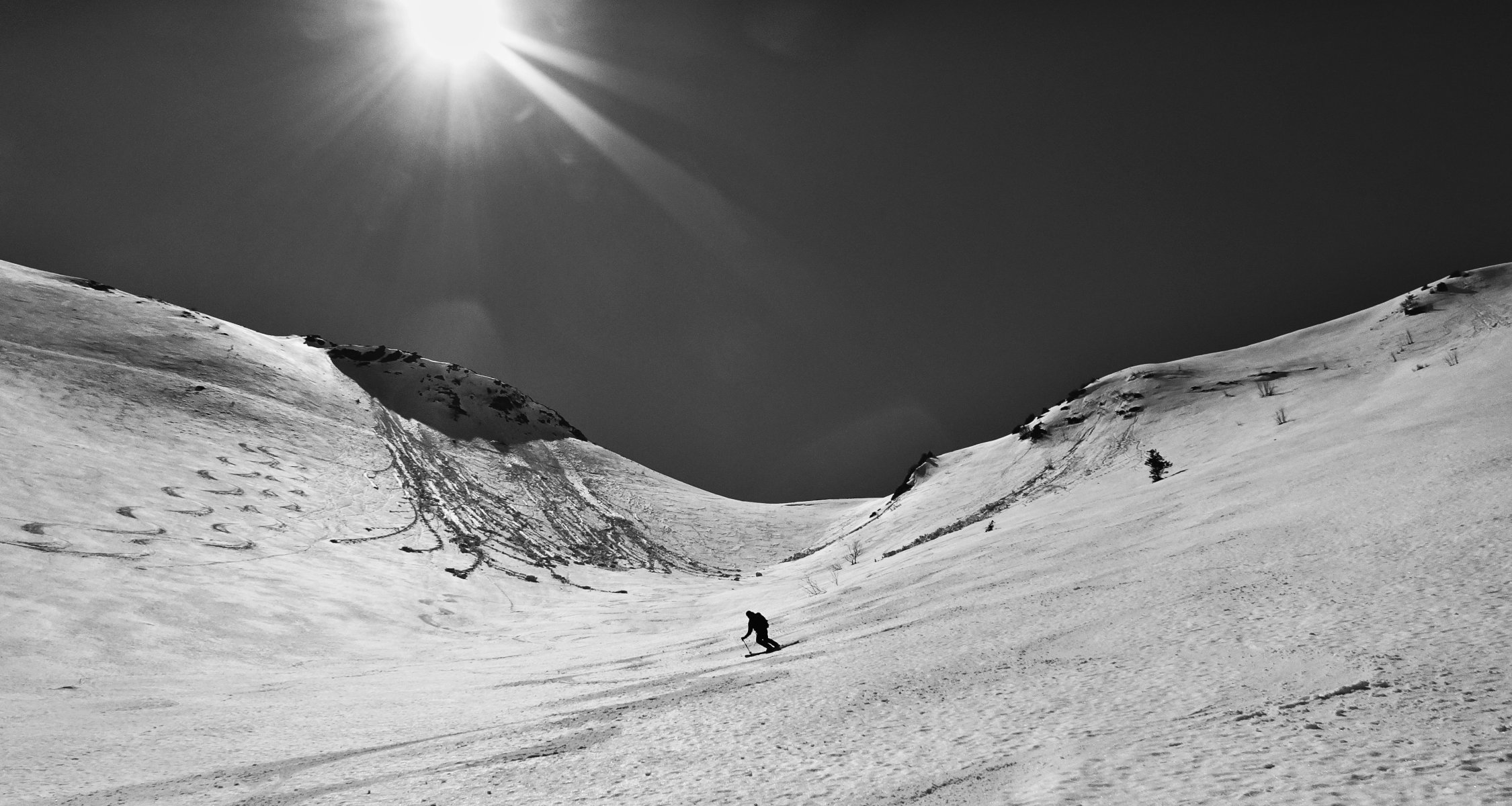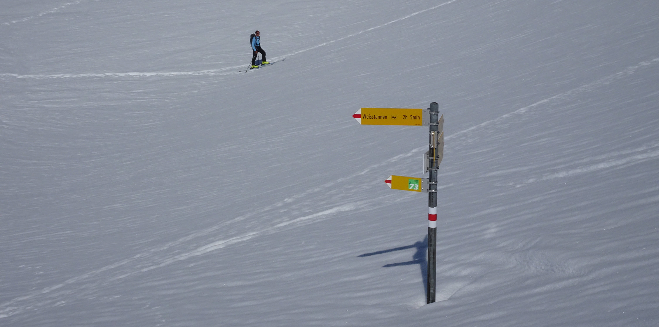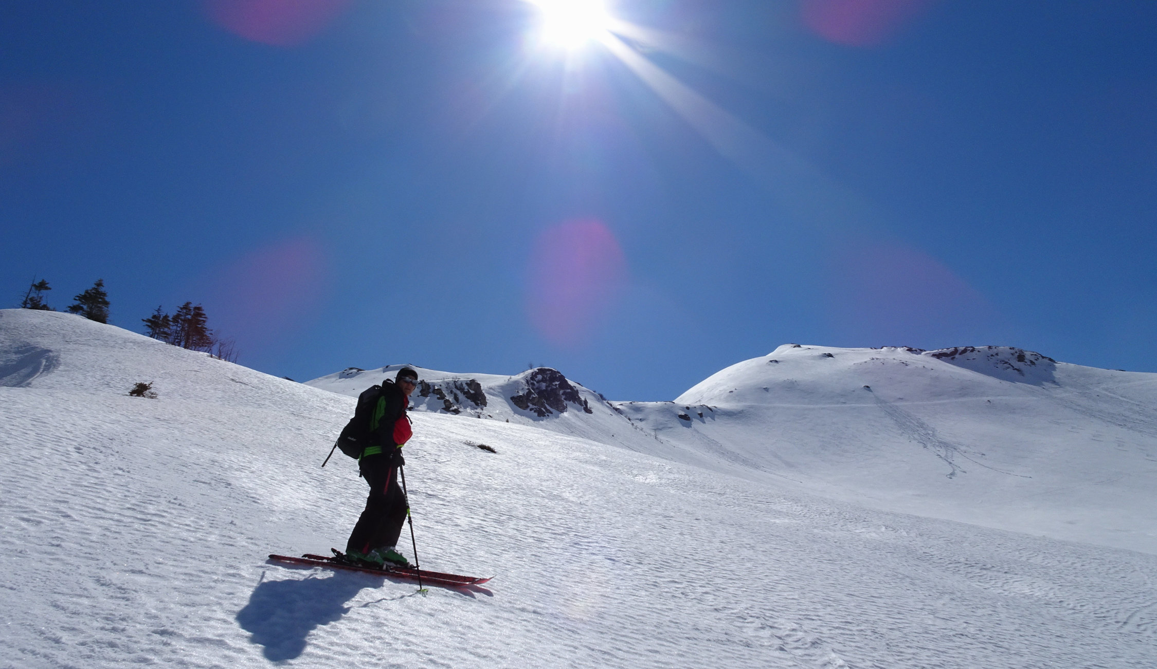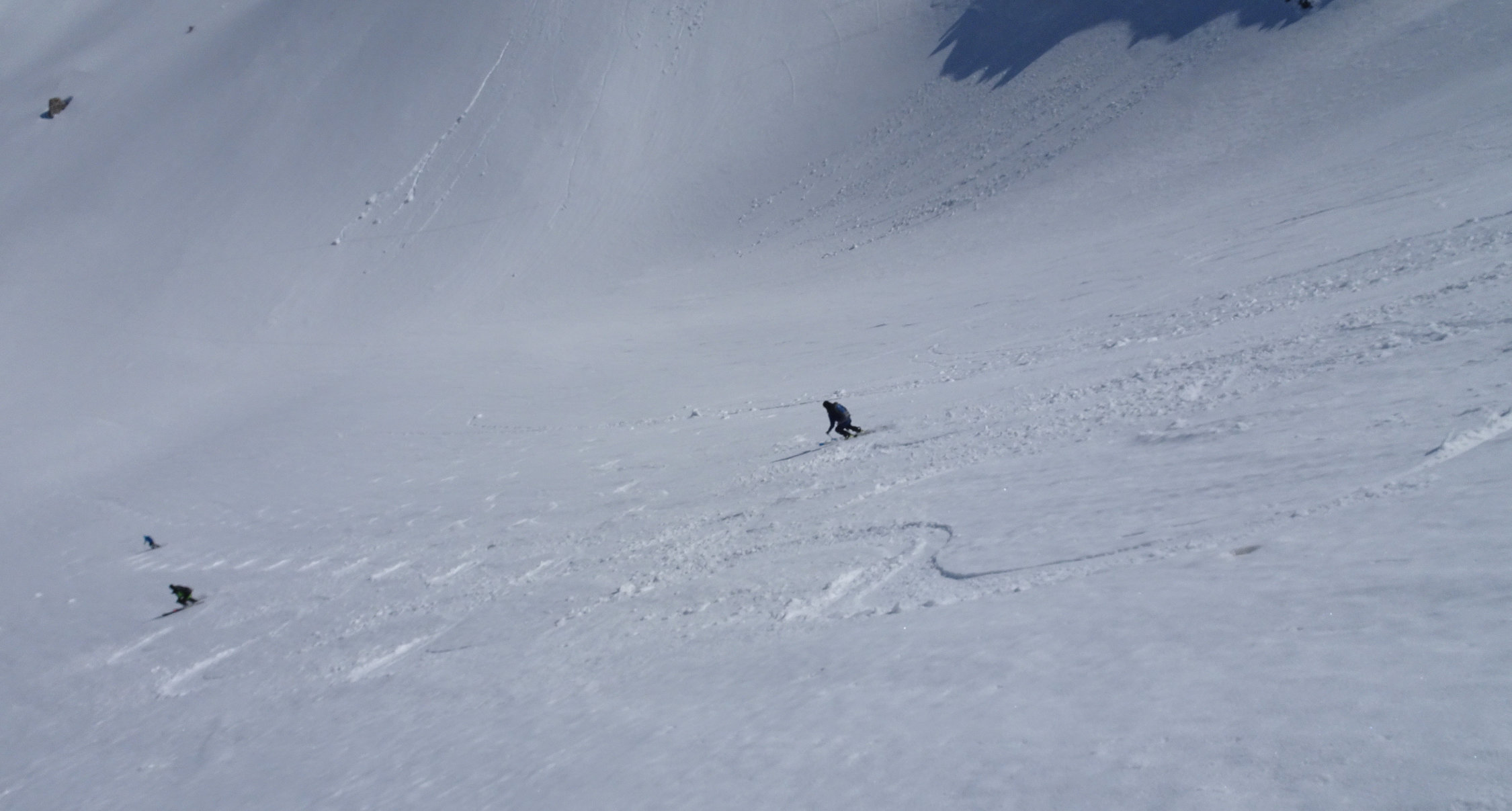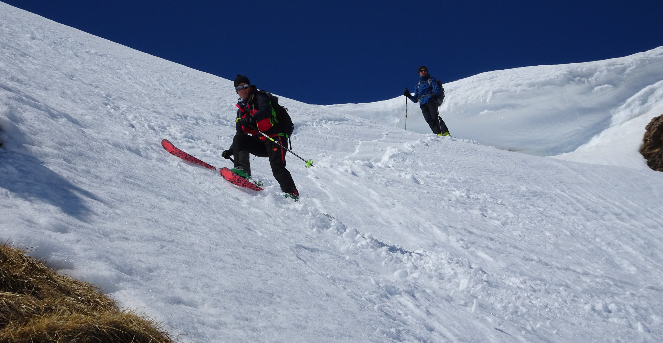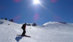 Im Aufstieg (Start um 07:30 Uhr) haben wir durchgehend eine tragende Schneedecke gefunden. Die Abfahrt in leicht aufgesulztem Schnee war ein Traum.