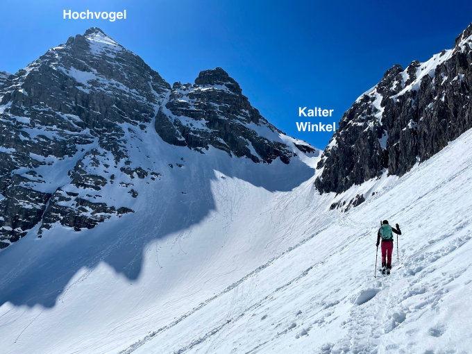Im kalten Winkel bleibt der Schnee den ganzen Tag hart gefroren. Von der Balkenscharte zum Prinz-Luitpold-Haus schöner Firn. Der Hang direkt unterm PLH ist von Schneebollen übersäht. Nervig im Aufstieg und spaßbefreit in der Abfahrt. Unterhalb wieder schöner Firn. Unten am Bärgündlesbach wird der Schnee langsam weniger und es gibt ein paar Tragepassagen.