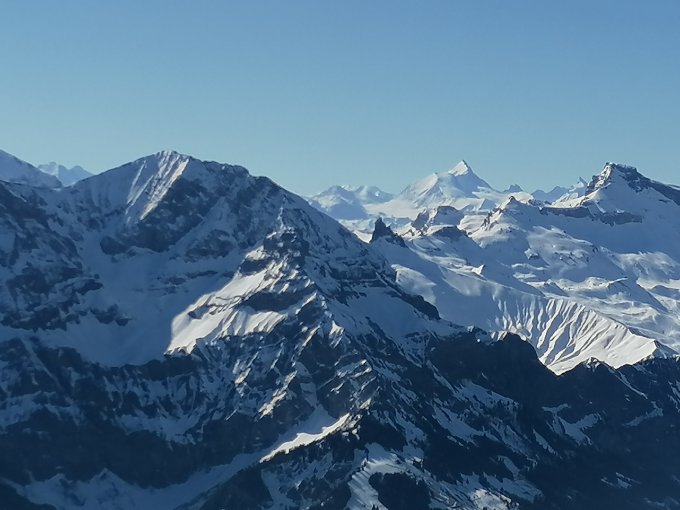 Ein prächtiger Frühlingstag zum Skitouren gehen. Windstill, mild und eine ausgezeichnete Fernsicht bis zum Mont Blanc. Besser kanns nicht mehr sein.