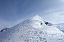 Abfahrt über den Sporn war besser als erwartet, manchmal noch Presspulver gefunden.