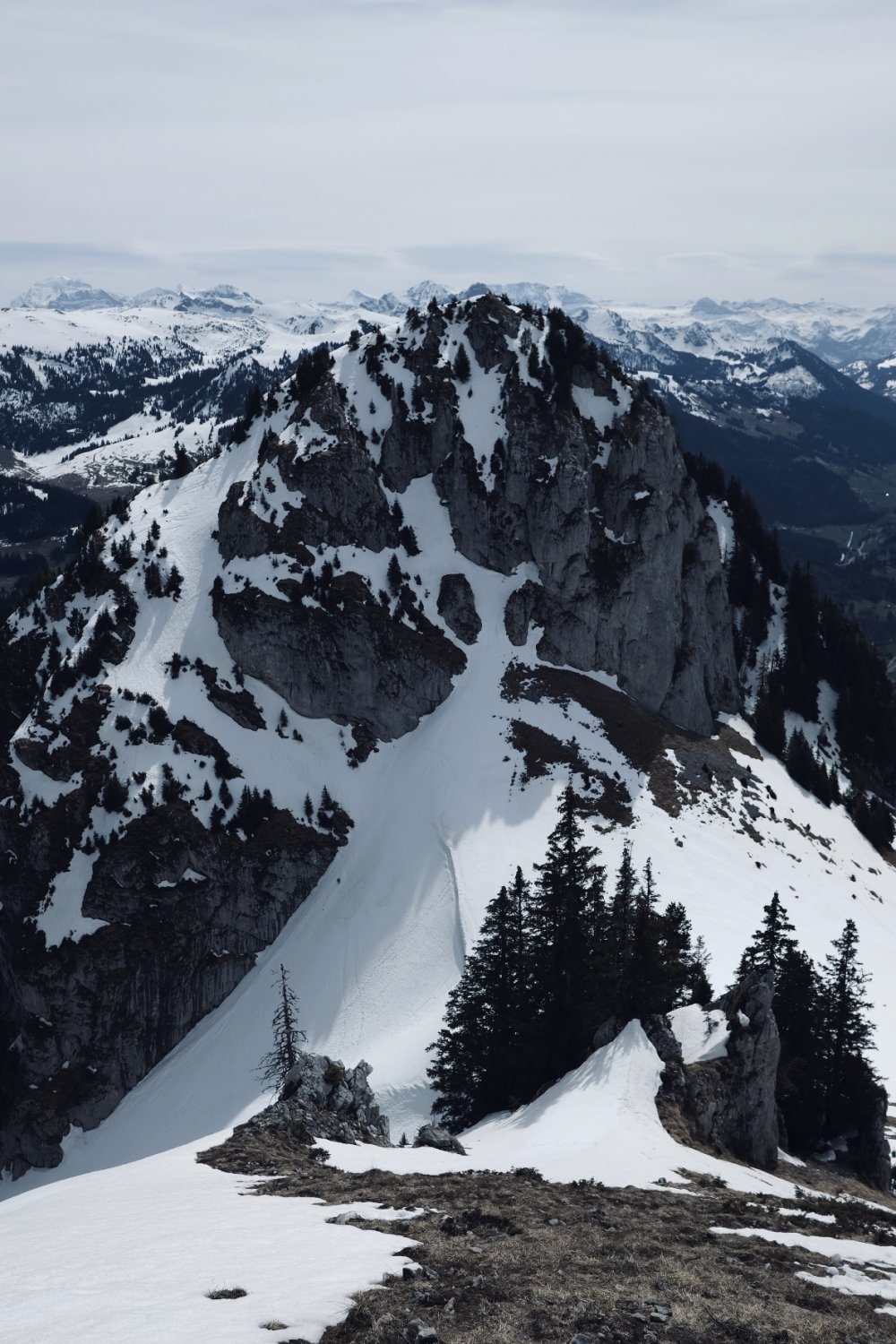 Schnee ab 1500 m. Aufstieg von Boltige via Nüschlete. Abstecher aufs Chiehore: Vereinzelt noch Schnee und rutschig, der Grat aber grösstenteils schneefrei. Trimlehorn Aufstieg via S-Flanke und dann E-Grat. Immer wieder mühsamer Schnee. Gipfel nicht erreicht – letzter Gendarm zu viel Schnee und zu steil für heute. Abstieg via E-Grat und Flanke (Tierspuren im Schnee folgen) bis zum Einstieg Südwand Holzerhore. Wäre wohl machbar, aber drei Schneefelder im unteren Teil des ersten Aufschwungs haben uns die Lust genommen. Abstieg direkt nach Ramsere im grossen, mit Schnee gefüllten Couloir zwischen Holzerhore und Mittagflue. Gute Abfahrt. ;)