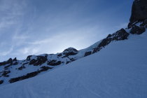 - Couloir im Aufstieg problemlos, Steigeisen empfohlen, aber nicht zwingend