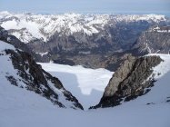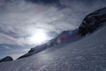 - Abrutschen durchs Couloir sehr anspruchsvoll. Dies weil durch frühere Tourengänger arg lädiert (gestuft). Wer nicht aufpasst, bleibt in einer Stufe hängen und kippt nach vorne...