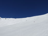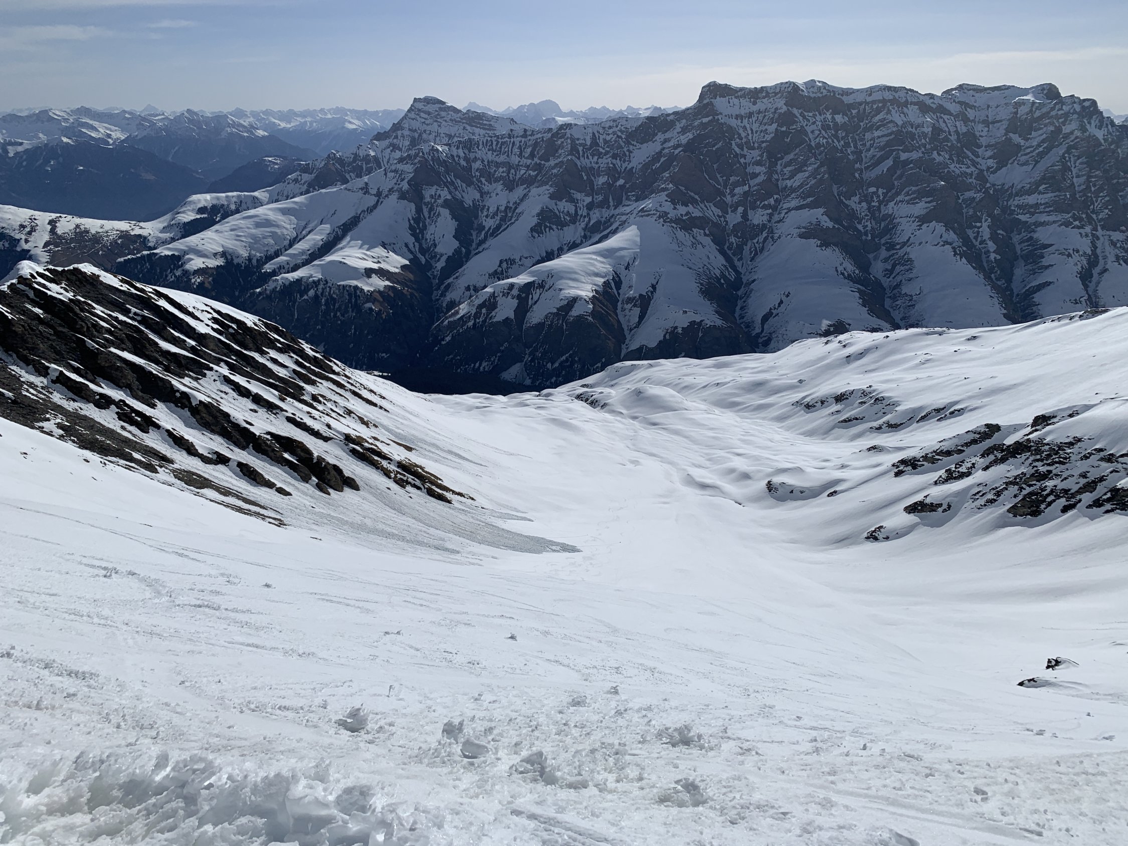 Abfahrt um 10.30 vom Gipfel war der perfekte Zeitpunkt. Der Gipfelhang war leicht angesulzt. Super! Im flacheren Teil etwas härter. Unterhalb 1900 m recht weich, aber immer noch sehr gut zu fahren.