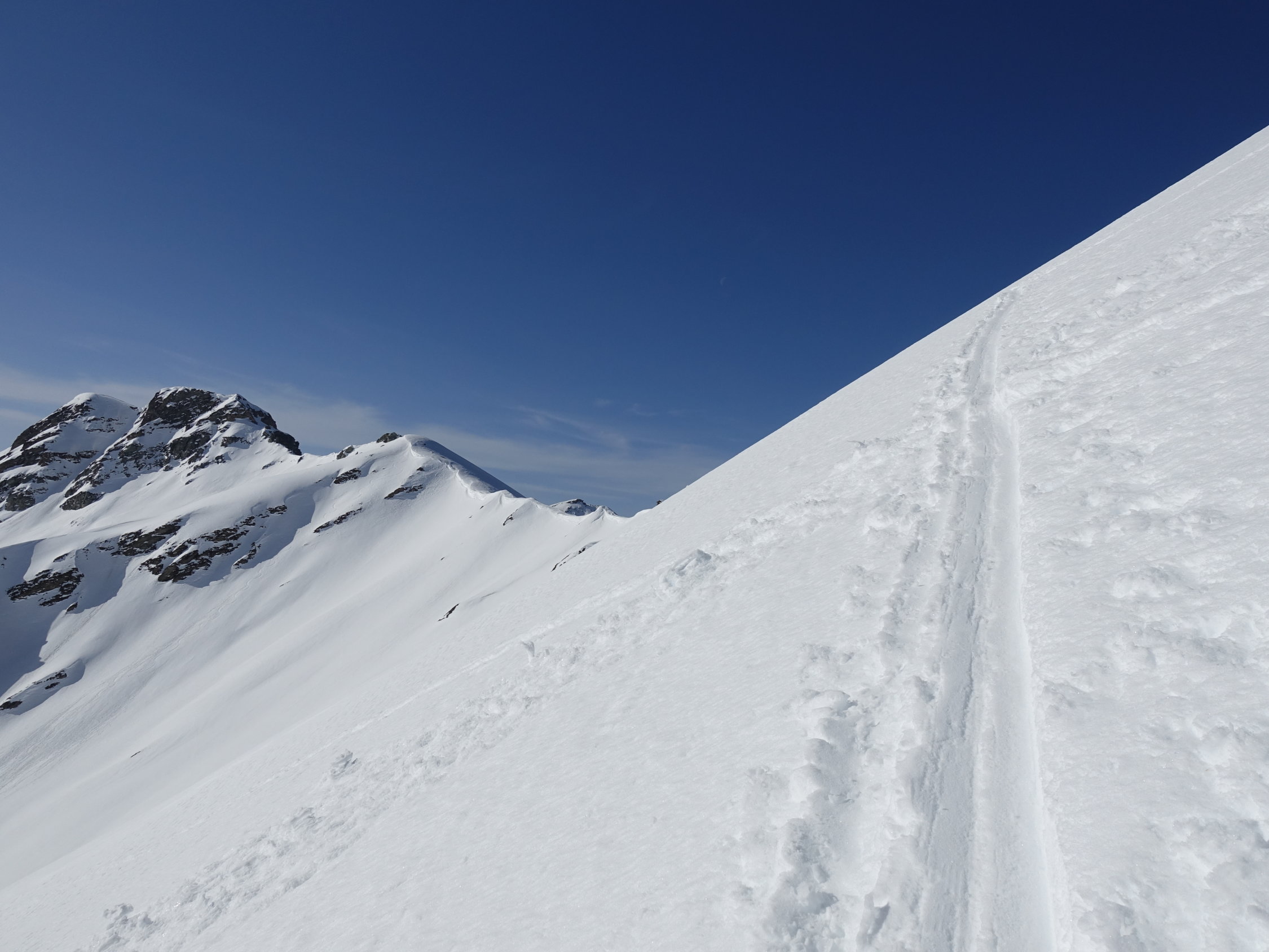 Am Gipfelhang konnten wir eine gute Spur nutzen.