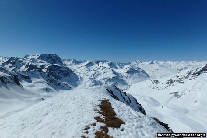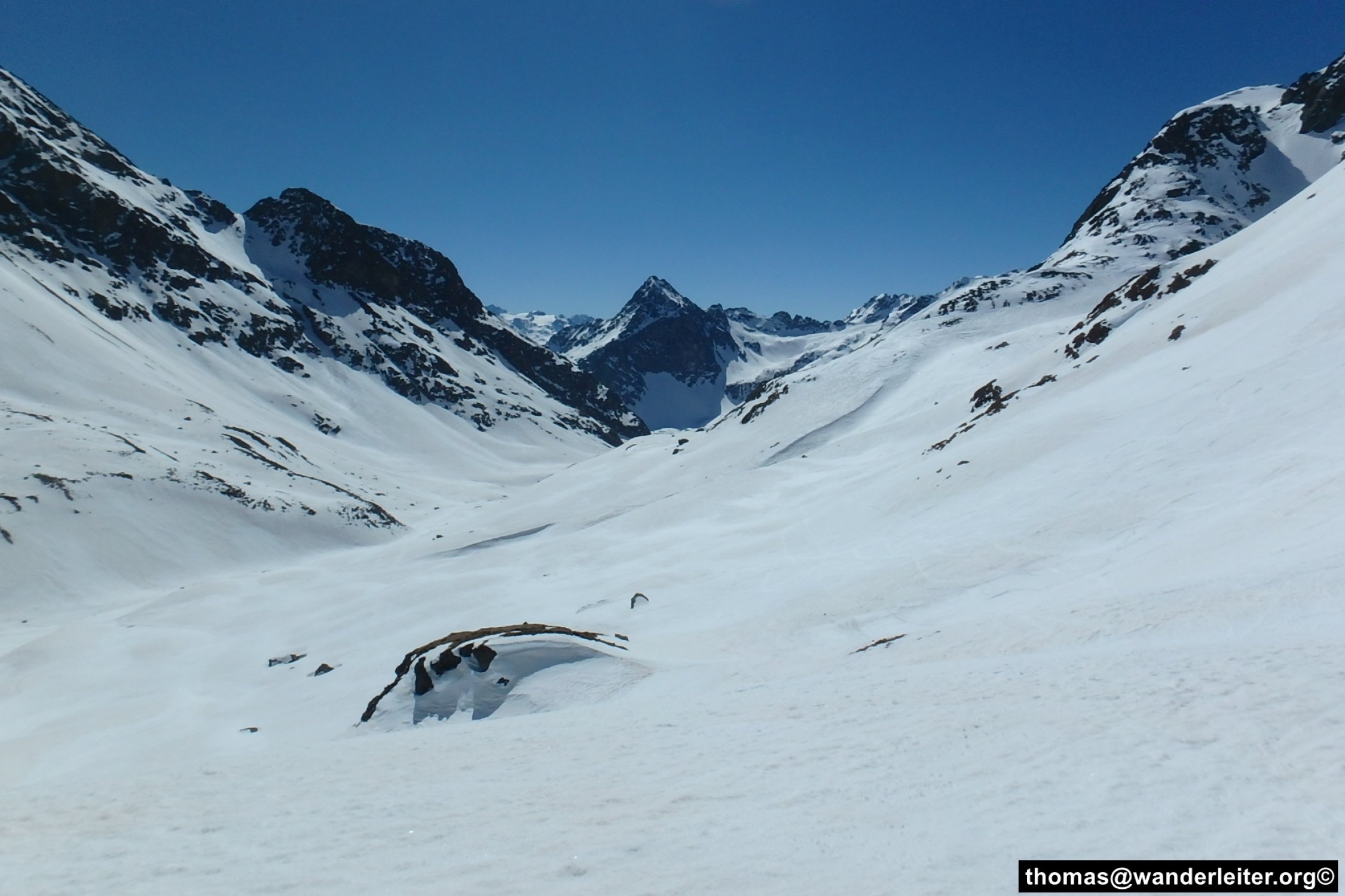 Im Valletta dal Gügglia waren viele Skitouren geher unterwegs, zu anderen Zielen als den Muot Cotschen