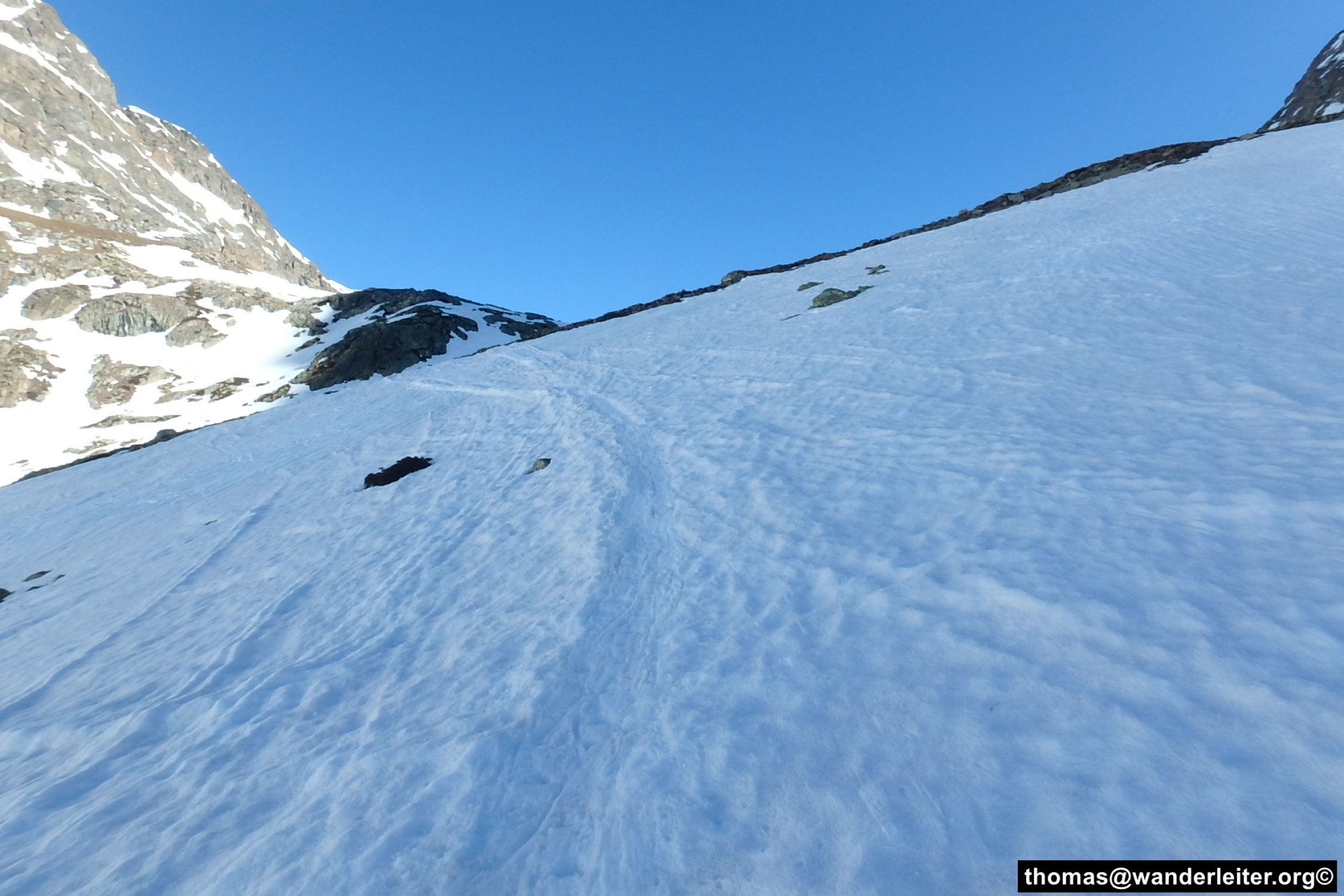 Aufgrund der kalten Nacht, war der Schnee sehr gut gefroren und trägfähig. Gegen ende der Tour wurde der Schnee sulzig.