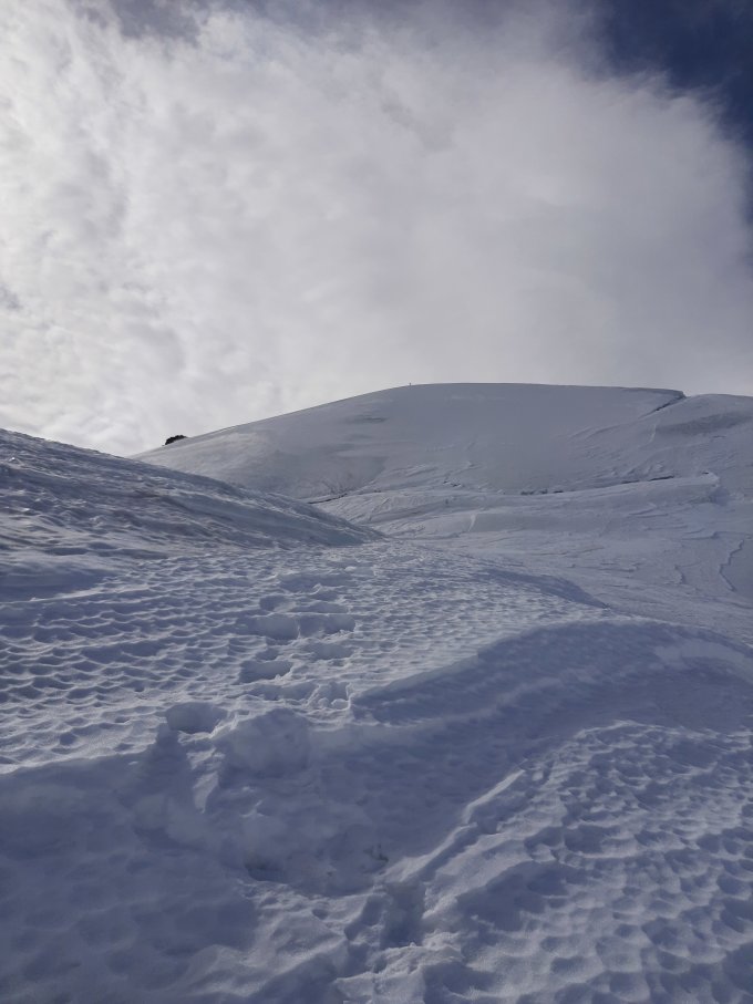Mitte gipfel Flanke gibts mehr eisklettern sonts gute Firn. Die Spalten in mittlere Bereich zu beachten.