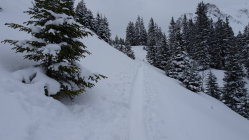 Aber dort wo die Sonne hinkommt ist der Schnee schon leicht gedeckelt