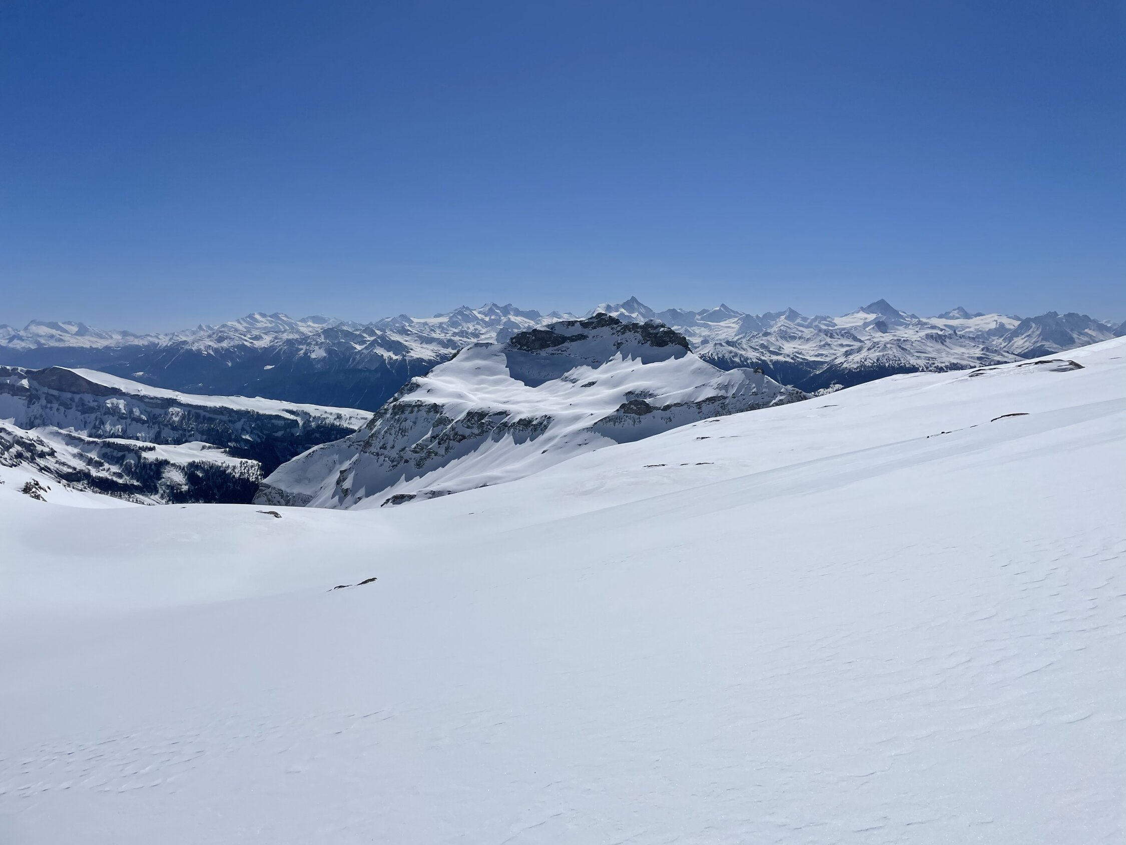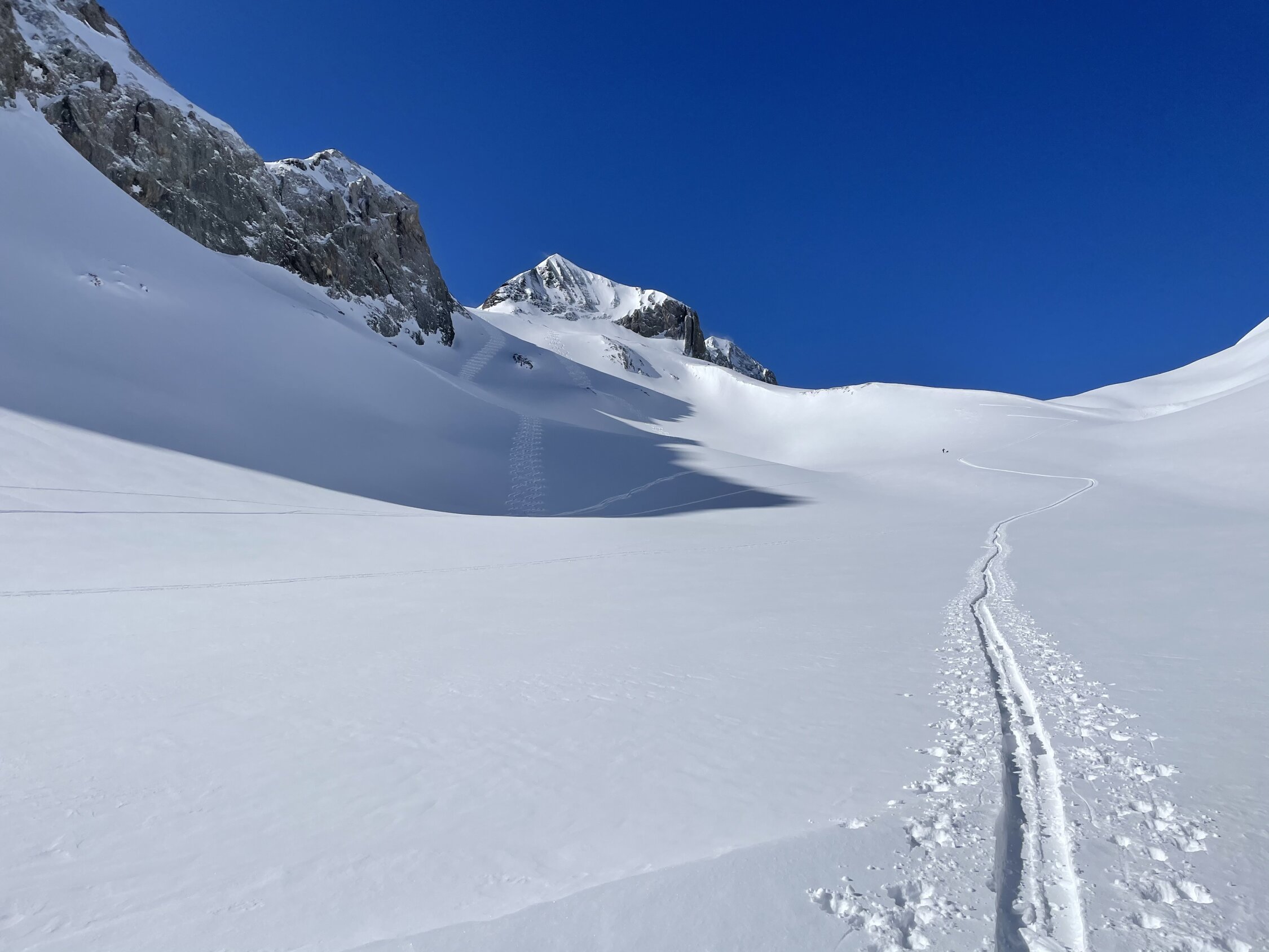 Top Verhältnisse. Ab Hubelmatte Pulver, mit zunehmender Höhe auch mehr Pulverschnee. Aufstieg über Iffighore ist schön gespurt. Abfahrt zum Iffigsee im oberen Teil abgeblasen und nur wenig Schnee. Wird nicht ewig durchgehend fahrbar bleiben. Ab Iffigsee auf der Normalroute zum Wildhorn. Sehr angenehm zu gehen, praktisch keine harten Stellen. Abfahrt war genauso schön.