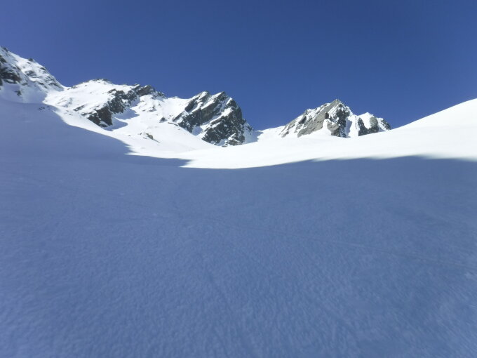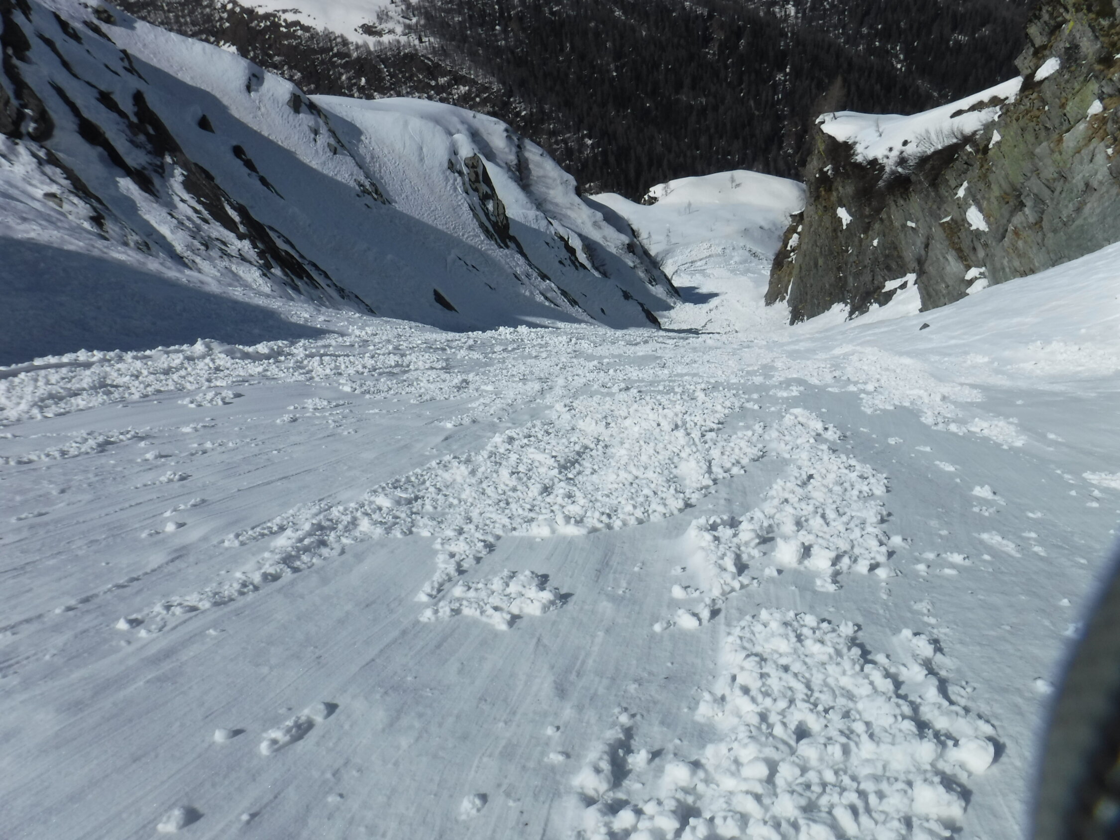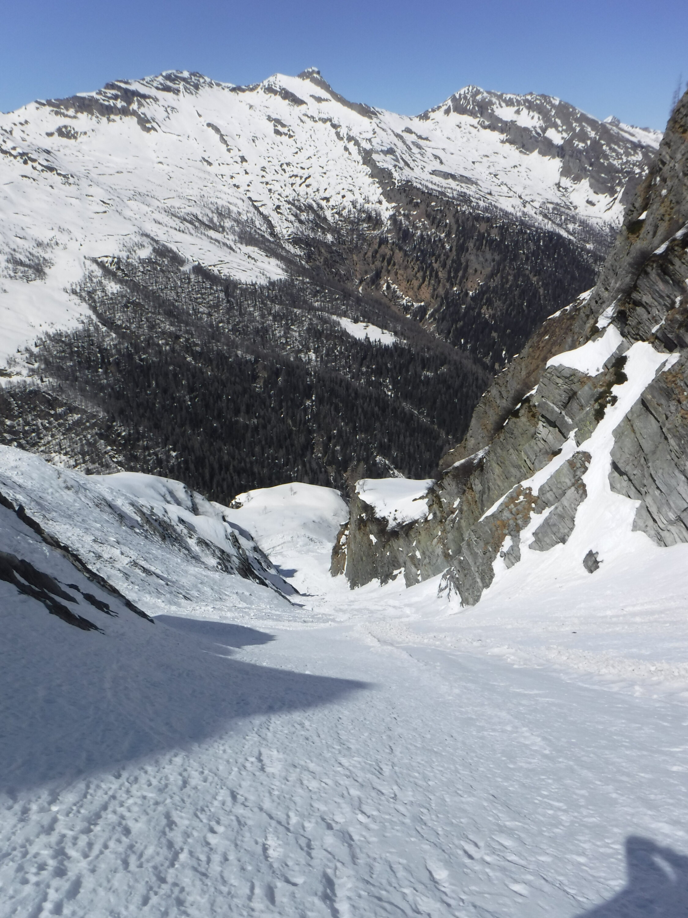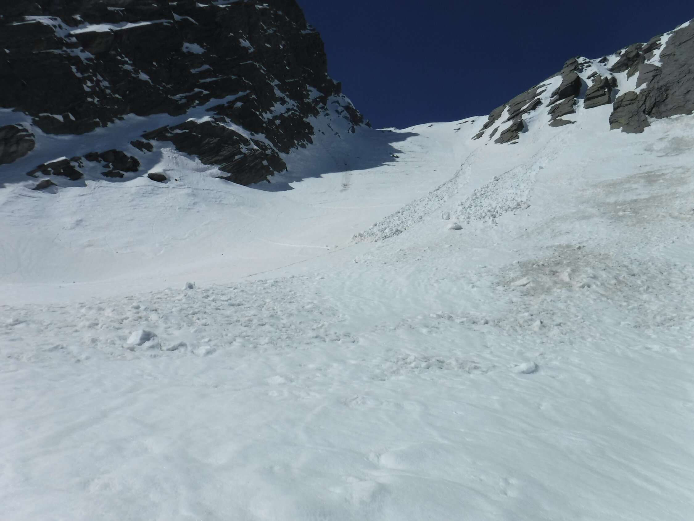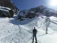 Beschriebener Abstieg durch das Canalone Nord ist nur dann zu empfehlen, wenn Lawinengefahr und Steinschlaggefahr nach entsprechenden Tagen geringer sind.