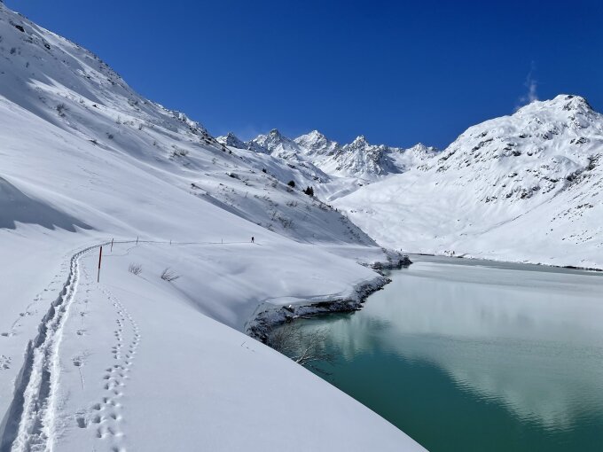 Bis zum See war gespurt dann waren wir total allein -