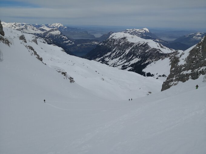 Siehe Eintrag Rossstock, alles perfekt, Ketten frei. Abfahrt über Höreli, vor de Löcheren zur Brücke oberhalb Suterlishütte gemacht. Ein Traum. Insgesamt 1550hm Aufstieg und 2000hm Abfahrt in perfektem Powder.