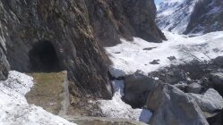 Am Ende für den Übergang zur Strasse 1358müM hat es nur noch eine kleine Schneebrücke. Dieser Übergang wird vermutlich nicht mehr lange gehen und dann muss man den Tunnel nehmen.