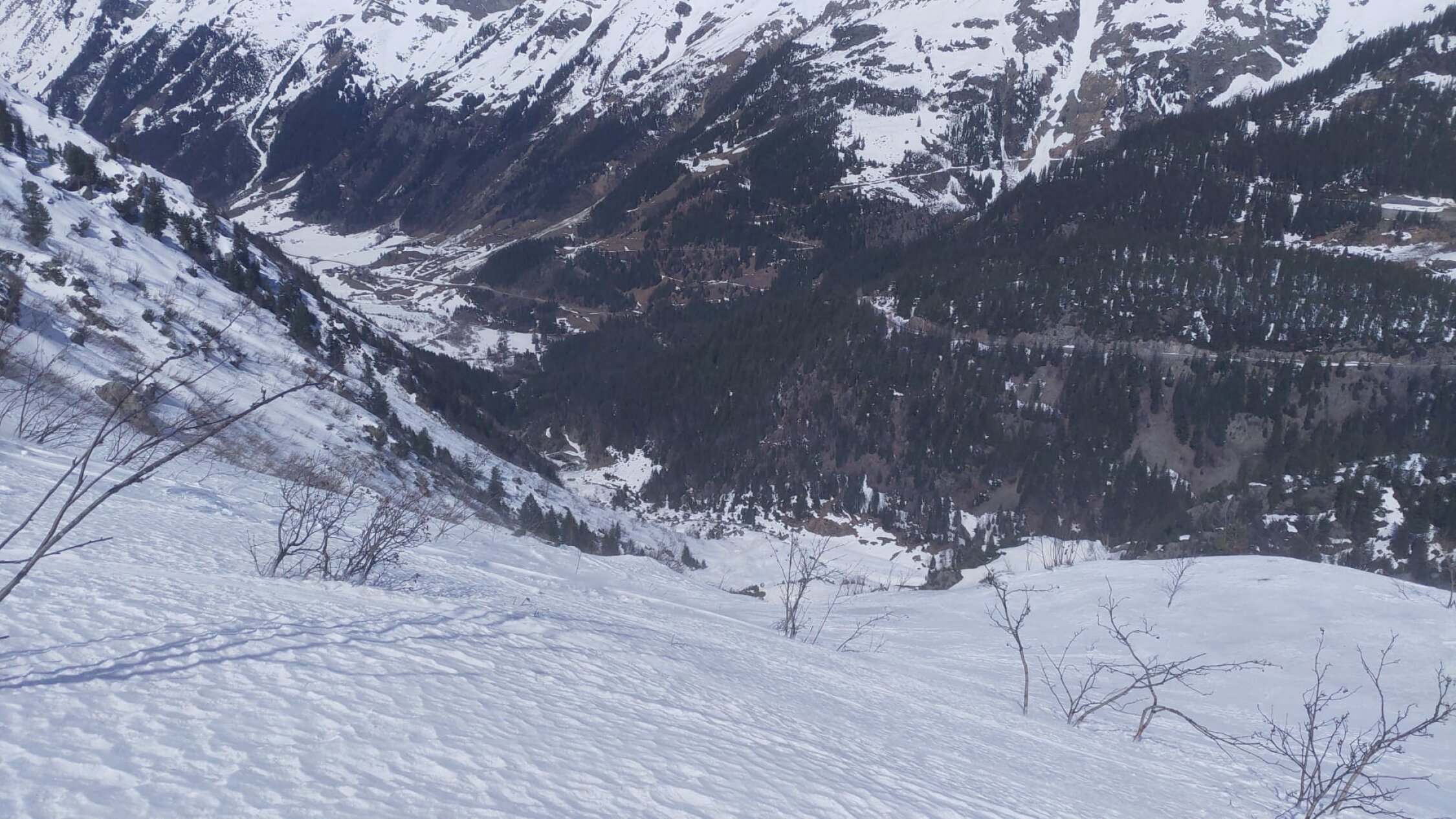 Durchs Gadmerwassertal noch genügend Schnee zum abfahren.