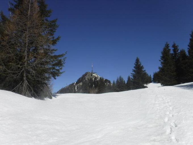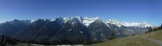 Tourenbeginn um 08.00 Uhr bei 3°C unter wolkenlosem Himmel. Zum Bassa dei Cantoi mußte ich den Weg suchen und spuren. Ebenso vom Matro zum Cogn. Ab 1650 m liegt noch verfestigter Schnee, über den sich morgens noch gut lauf ließ. Zwischen Bassa dei Contoi war eine Fußsspur vorhanden, welche von der Capanna Pian d’Alpe hinauf und hinunter kam. Von Cogn gab es alte Skispuren. Nach Puscett konnte ich einer alten SS-Spur folgen.