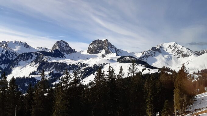 Es hat mich heute sehr betrübt, dass ich als einziger Skitourengänger mit öV an/abgereist bin (und dies obwohl die öV Anbindung perfekt ist (9.22 an, 13.16 ab). Die Parkplätze bei der Gantrischhütte jedoch voll, einige Spassvögel stellen die Autos einfach irgendwo hin (wohl weils voll war, oder einfach um die Parkgebühr zu sparen?).
