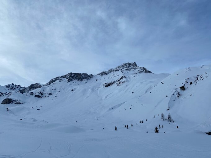 Griffiger Schnee von unten bis oben, nirgends Harscheisen notwendig. Durch die alten Nassschneerutsche unterhalb der Unghürtschuggen hat jemand eine gute Spur gelegt. Abfahrt vom Gipfel im windgepressten Pulver. Die Einfahrt in die Chammerastäge war etwas verblasen, aber gut zu machen. Schon einige Spuren im steilen Hang, aber immer noch etwas Pulver übrig.