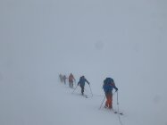 Wir haben die Tour ab der Tuoihütte unternommen und der Steilhang nach Westen hinauf bis 2600m war meist harter Triebschnee oder alter Sulz. Der Hang war gut verfestigt, die Verhältnisse o.k. dennoch für Anfänger schwierig zu begehen, da eher hart und rutschig zum Gehen.